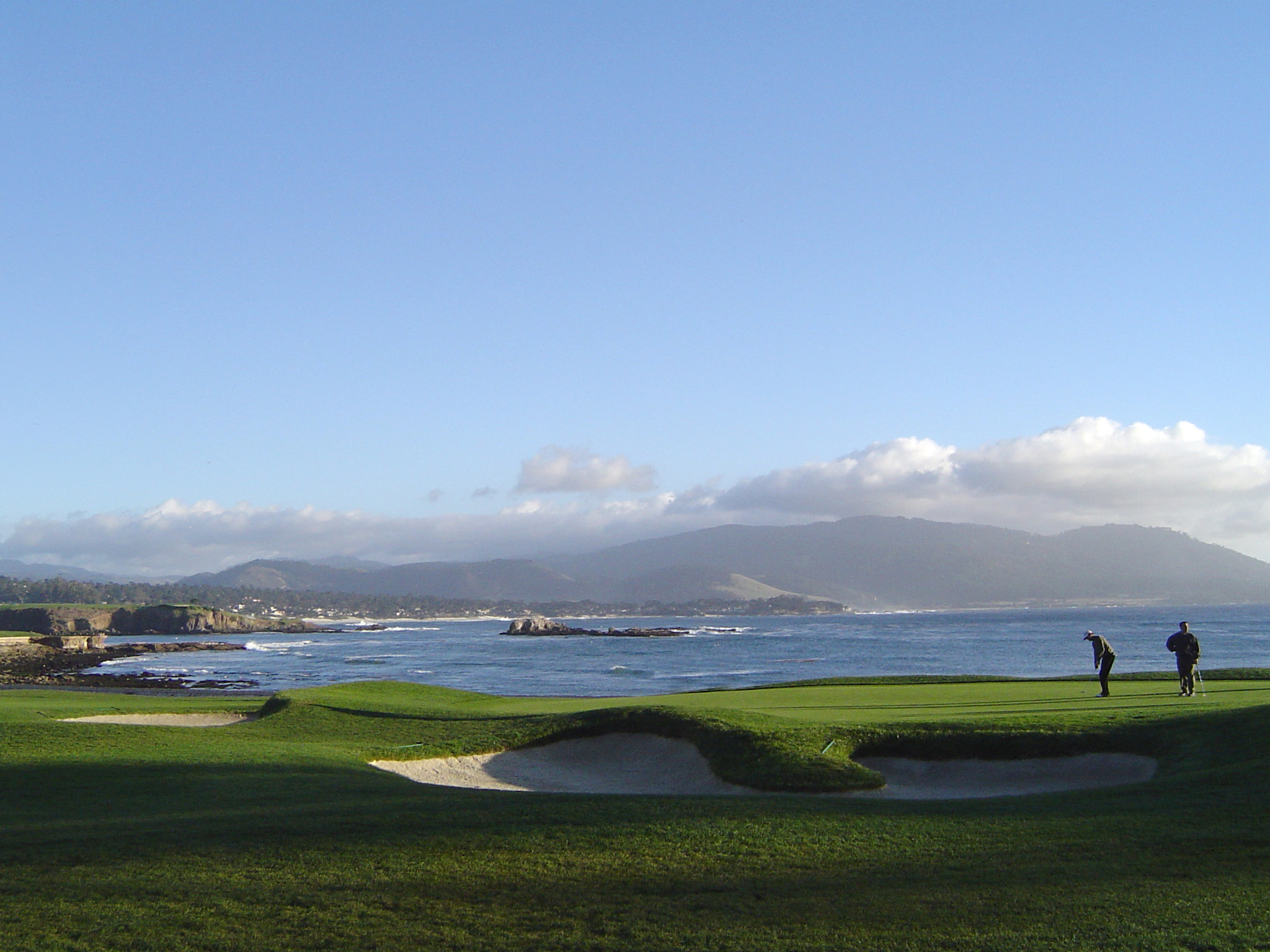 Keywords: gold, green, fairway, coast, coastal, california, grass, lawn, bunker, sandtrap, sand, water, ocean, play, game, passtime, golfing, round of golf