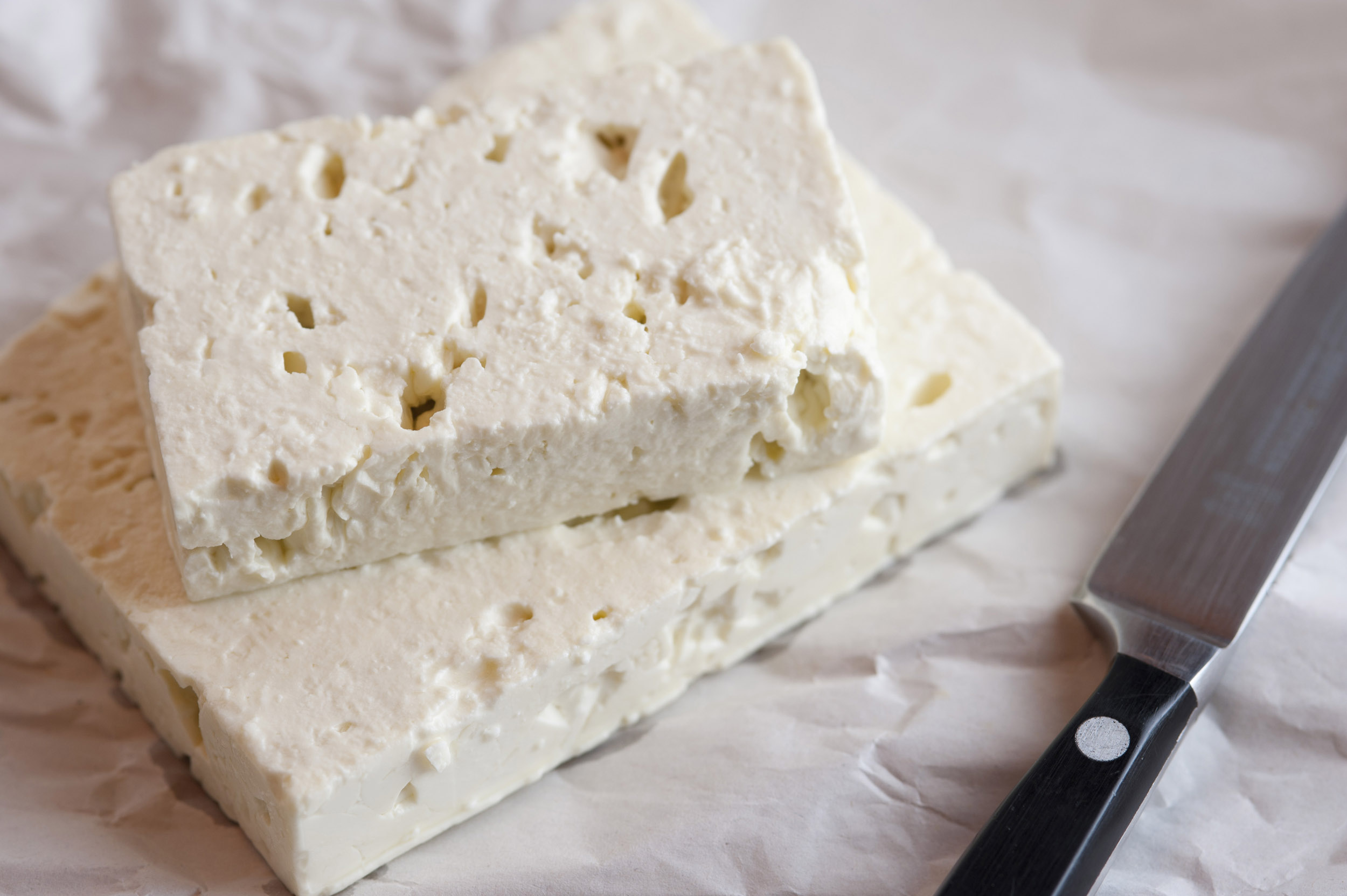 Traditional Greek feta cheese, a semisoft crumbly white cheese made from sheep or goats milk
