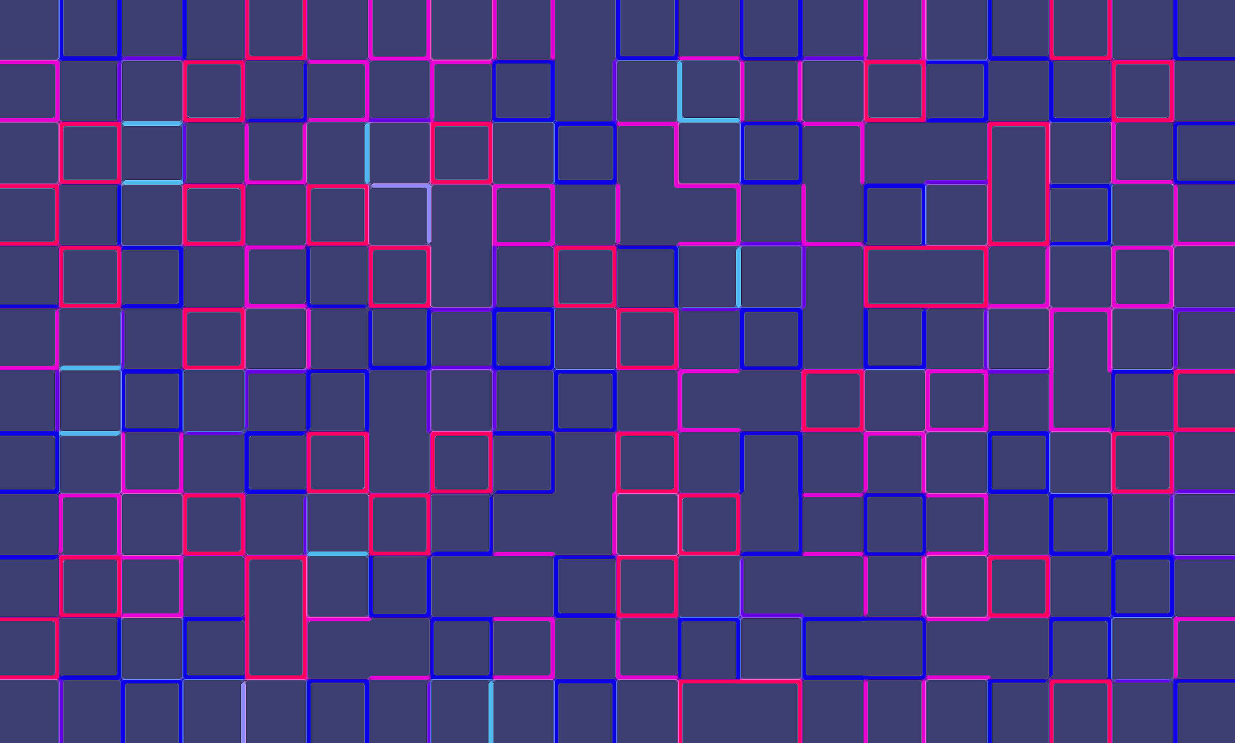 a squared grid pattern of pink cyan purple and blue squares and lines