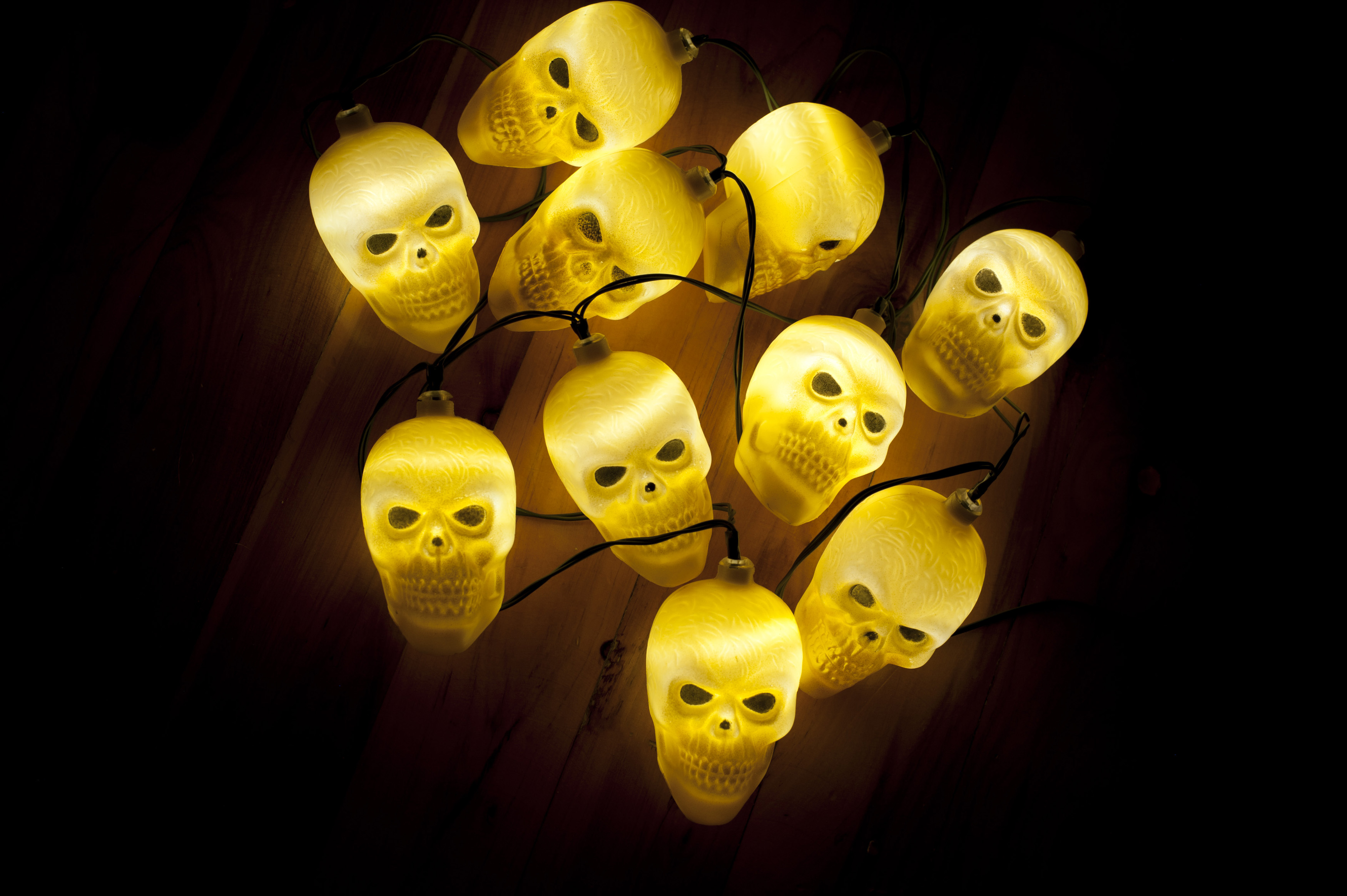 Keywords: festival, halloween, horror, skull, decoration, celebration, glowing, lights, party, yellow, lit, lights, spooky