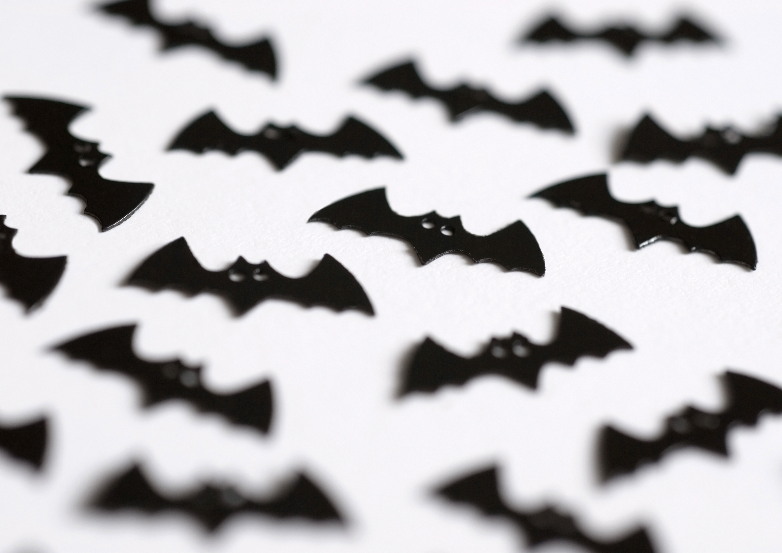 bat shaped halloween party decorations pictured with a narrow depth of field
