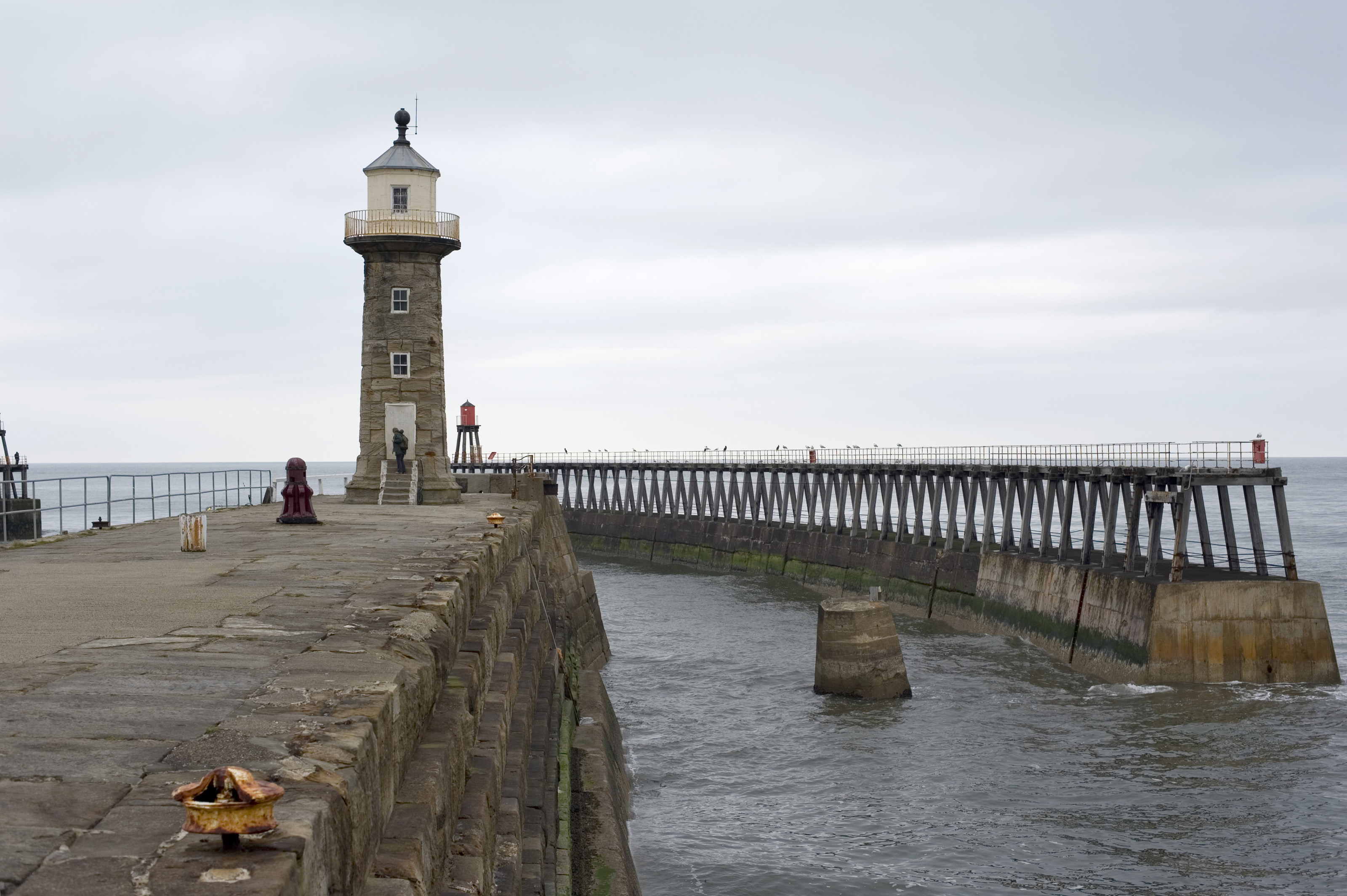 Keywords: light, entrance, ocean, stone, pier, warning, lighthouse, navigation, nautical, marine, guide, england, east, port, hazard, harbour, breakwater, seawall, whitby, north yorkshire