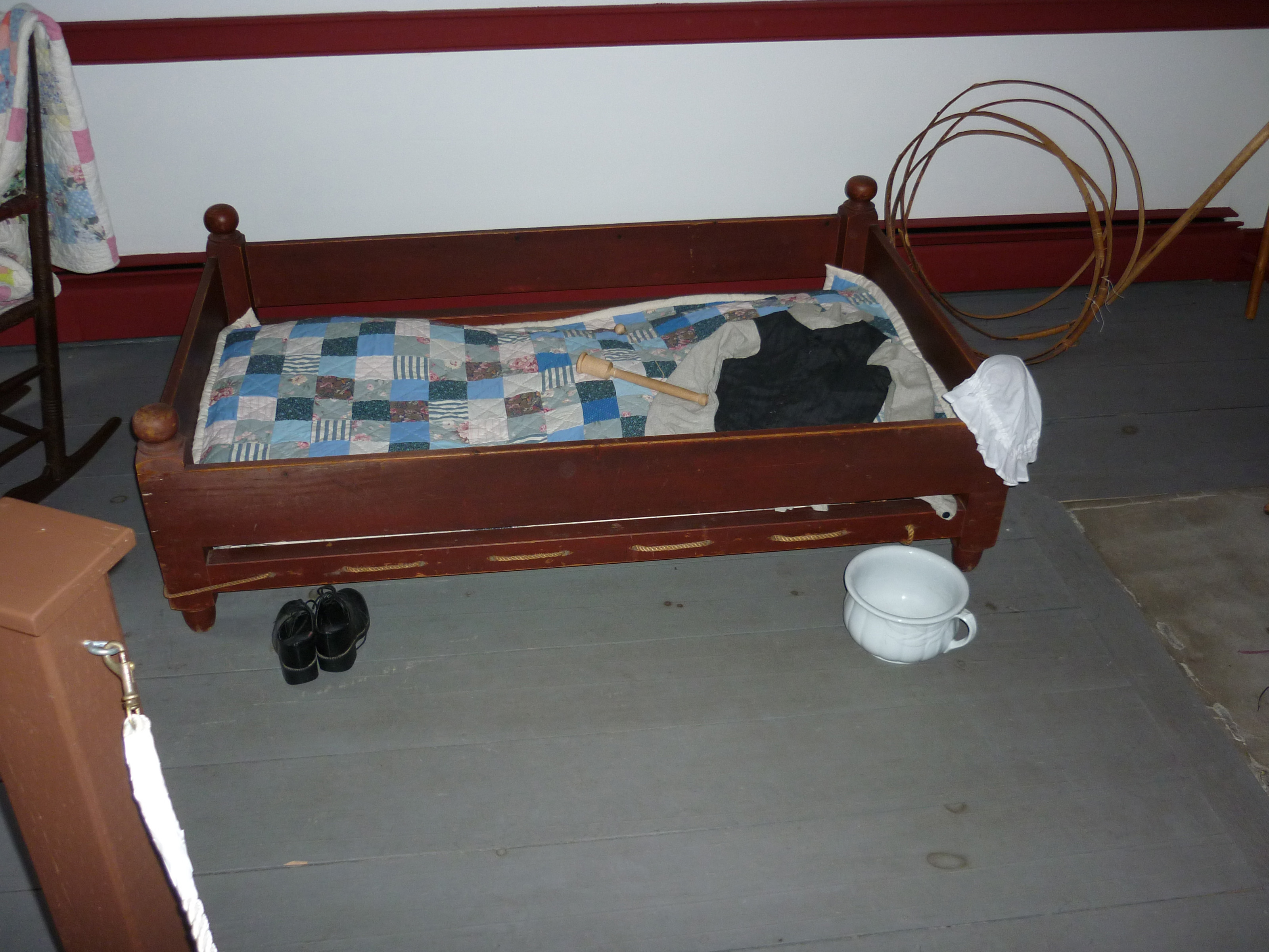 Keywords: bed, vintage, historic, cap, sleep, bedroom, cot, bonnet, duvet, potty, childs, wood, wooden, frame, exhibit