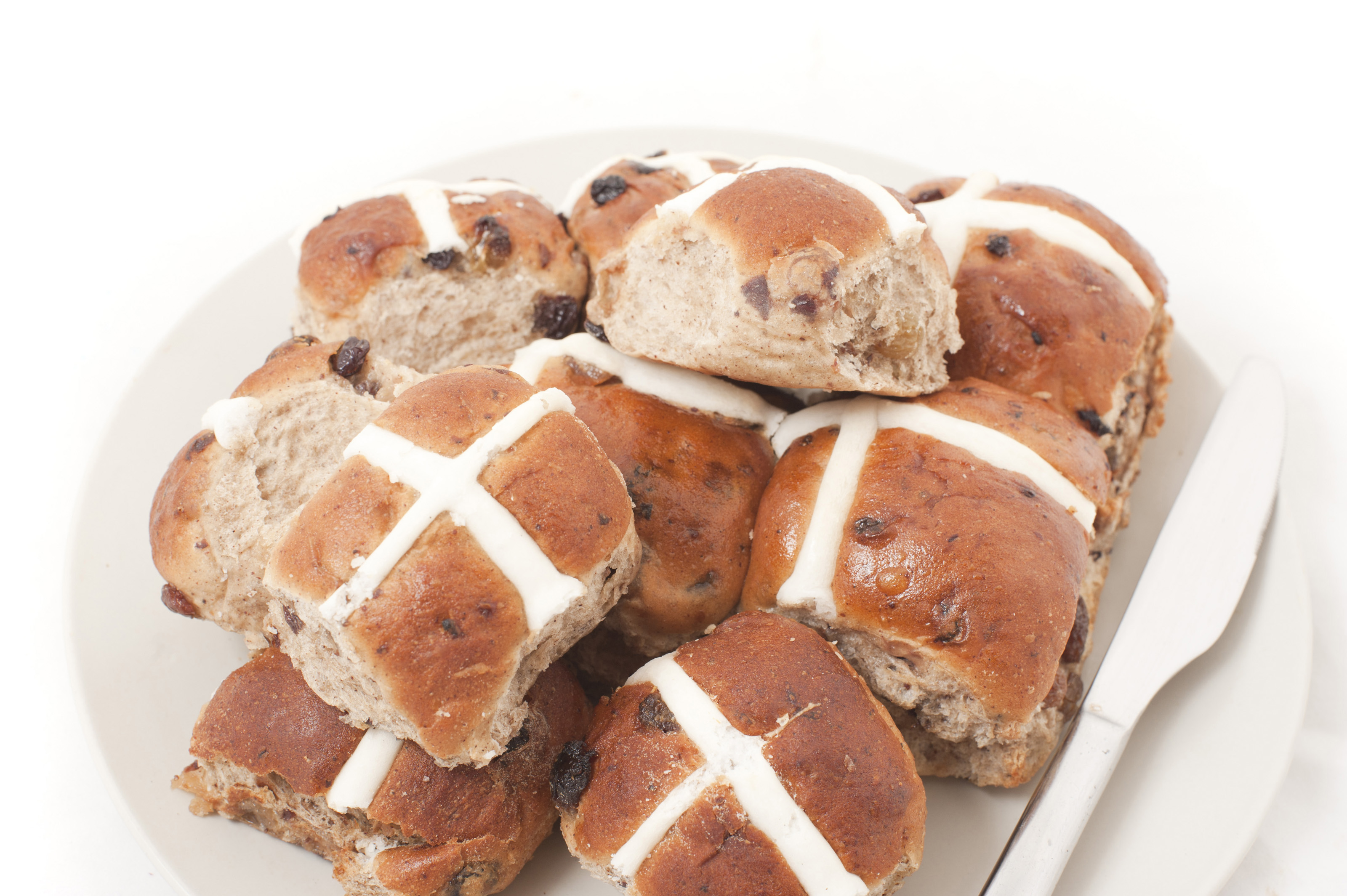10614 Fresh Hot Cross Buns on a Plate Isolated on White - this image by freebie.photography is licensed under a Creative Commons Attribution 3.0 Unported License.