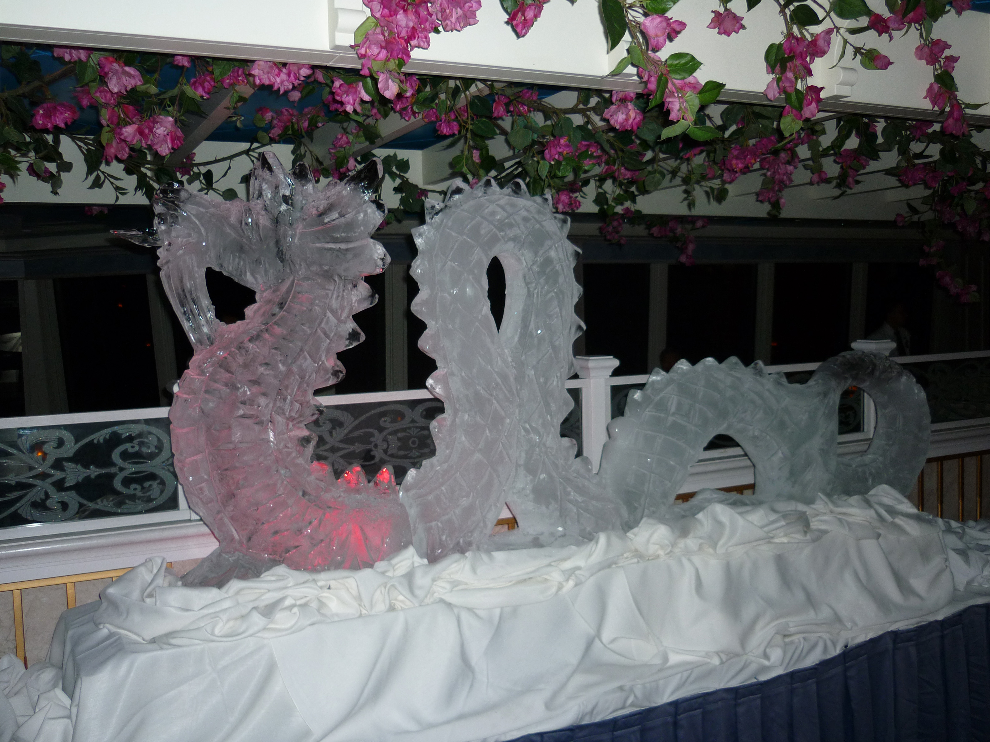 Keywords: ice, shape, frozen, art, display, indoors, sculpture, carved, dragon, mythical, flowers, creature, exhibit, artwork, sinuous