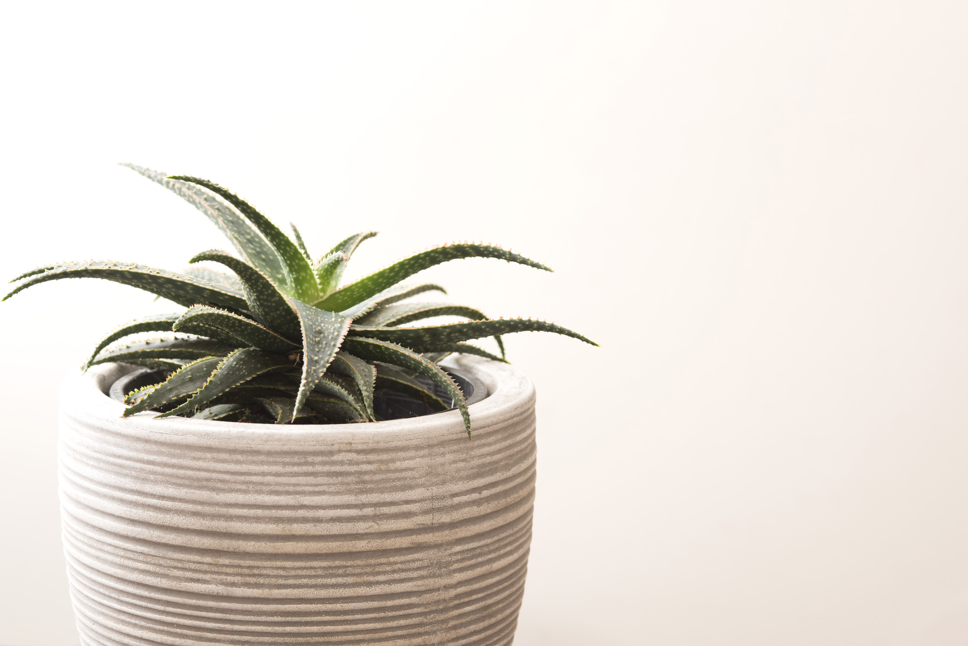 Keywords: aloe, closeup, copy space, flowerpot, houseplant, isolated, leaves, ornamental, potted, succulent