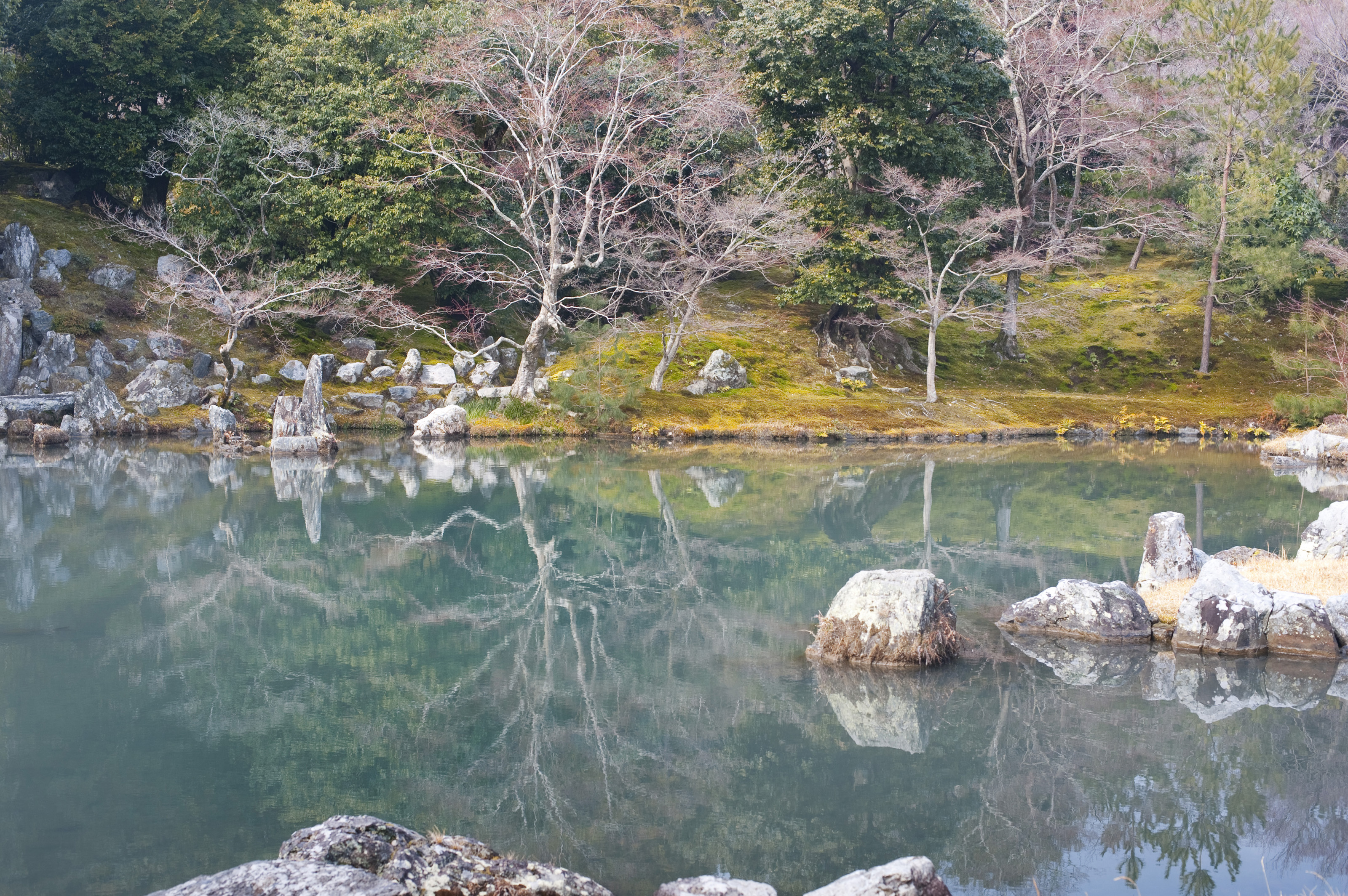 Keywords: japanese, trees, water, garden, reflection, rocks, shoreline, temple, kyoto, tranquillity, landscaping, arashiyama, tenryu-ji, tenryu shiseizen-ji, sogen pond