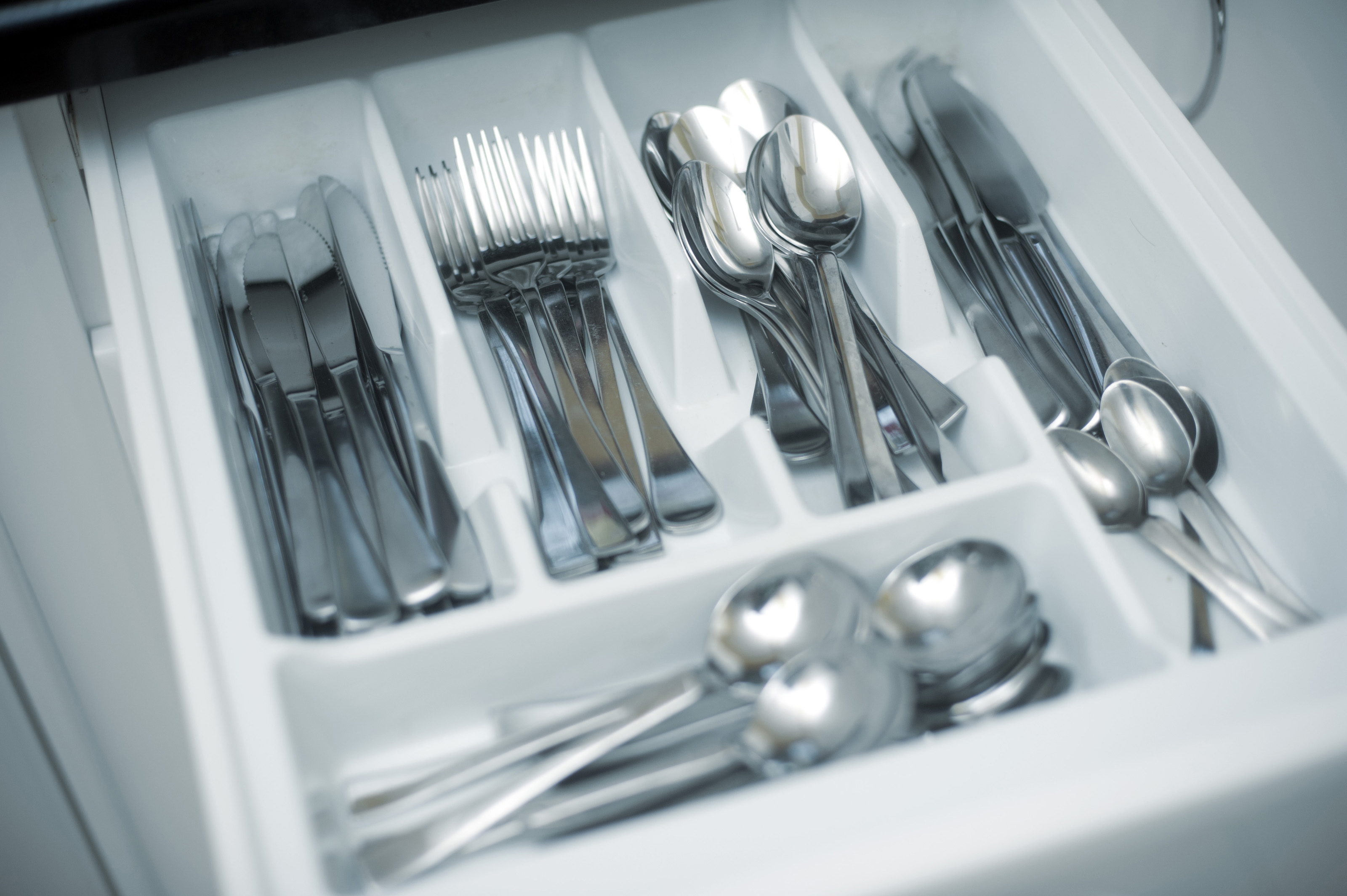 a nerrow depth of field image of the inside of a kitchen cutlery drawer
