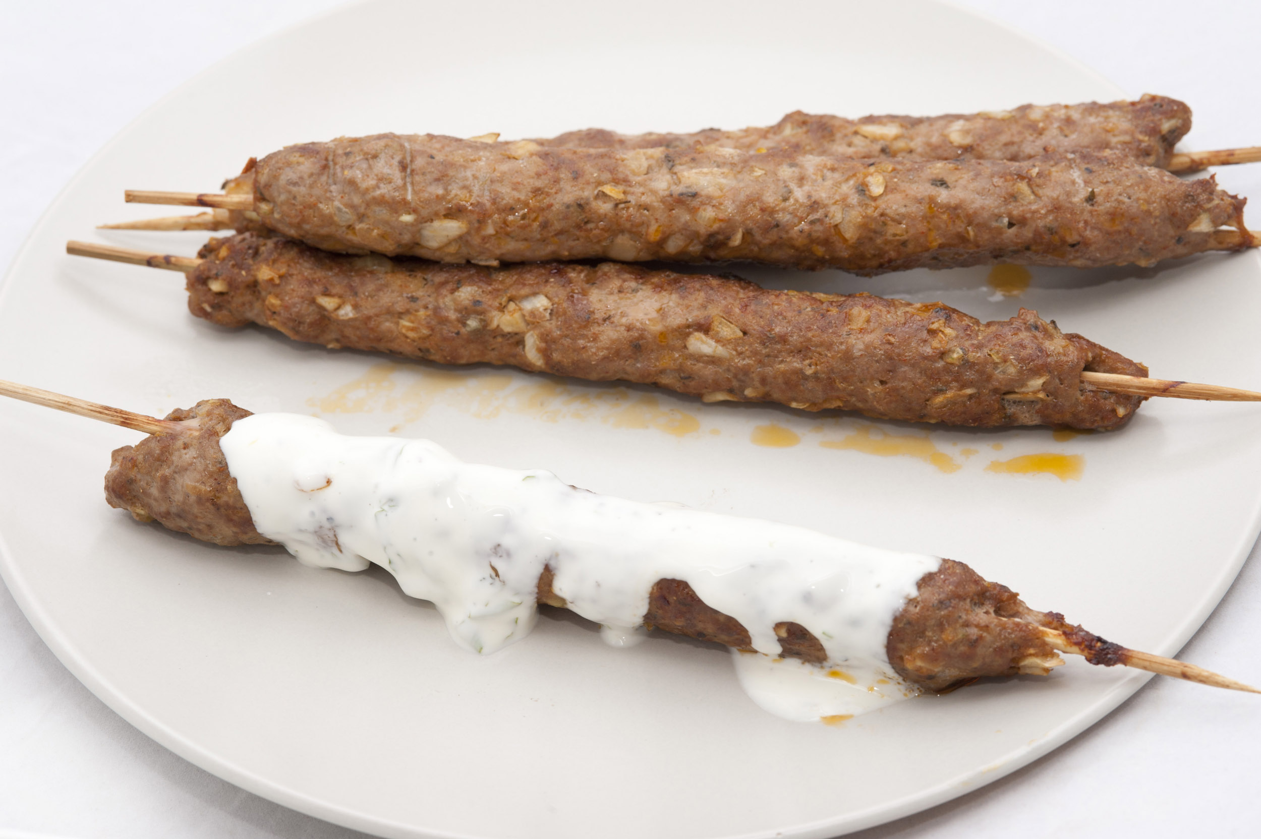Photo Title: Grilled kofta kebabs drizzled in yoghurt