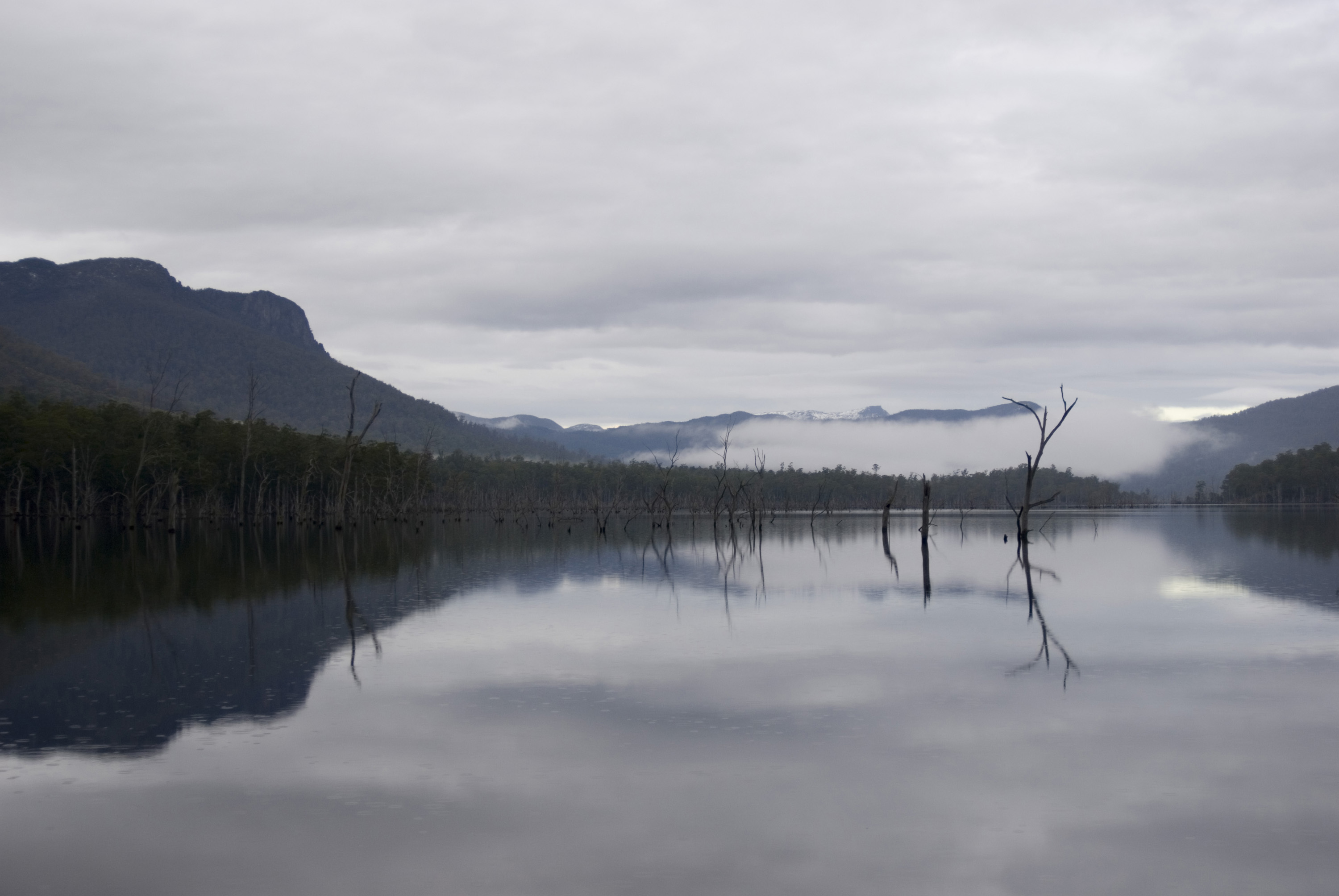 Keywords: landscape, trees, scenery, water, surface, reflection, lake, dead, tranquil, view, cloudy, australia, hydroelectric, tasmania, dammed