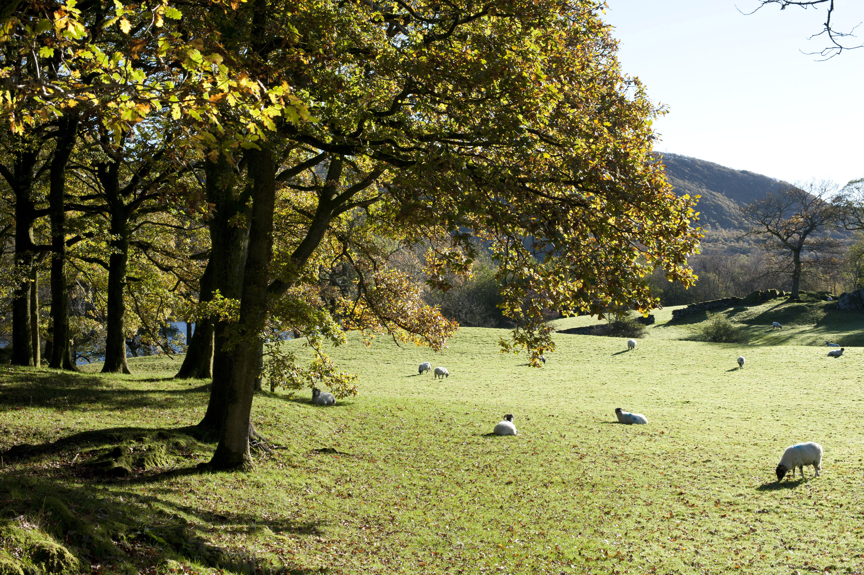 Keywords: agriculture, countryside, english lake district, farming, flock, grazing, lakeland, landscape, livestock, sheep, woodland, animals, pastoral, scenery, trees