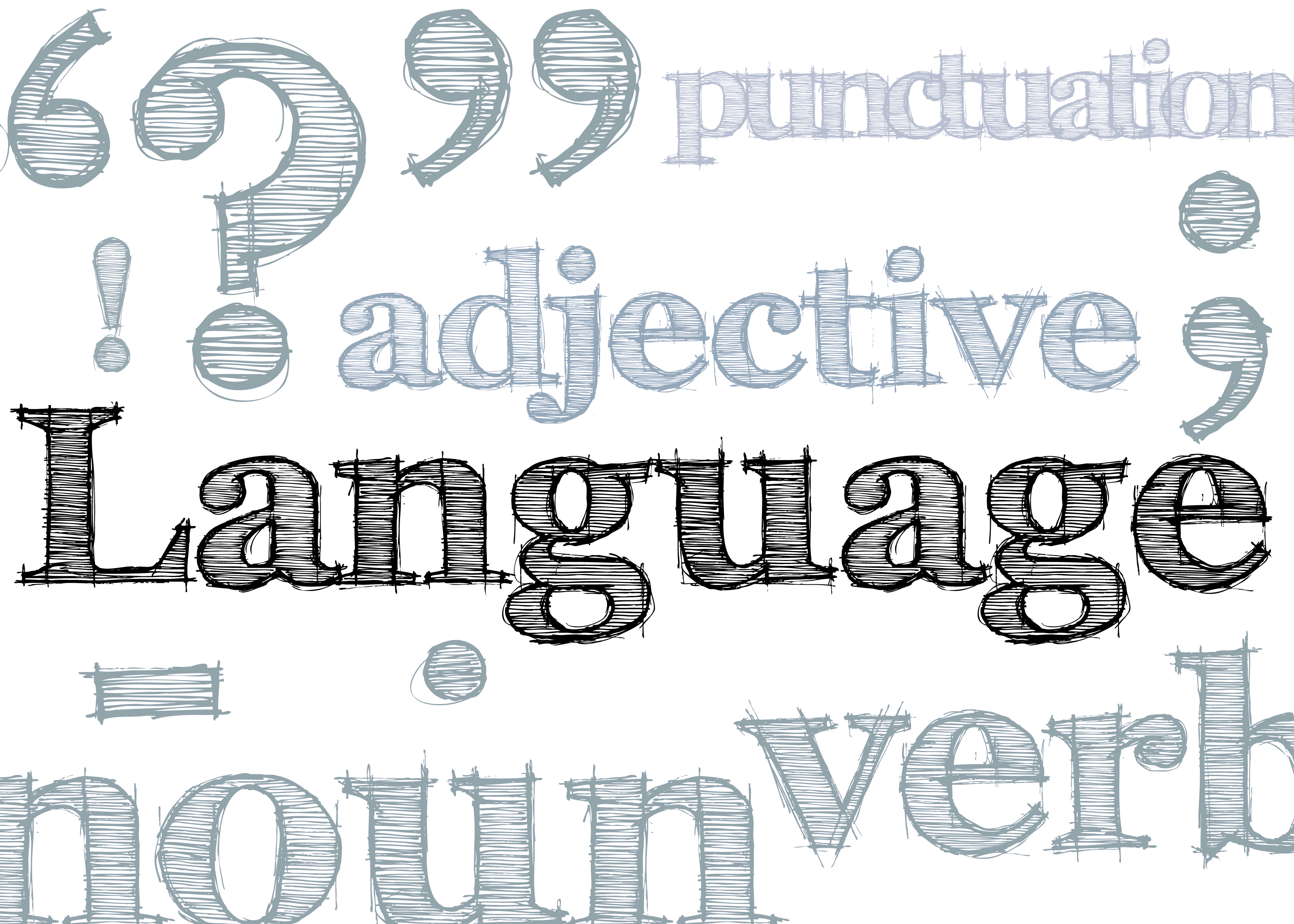 Keywords: handdrawn, pen, pencil, letters, type, typography, font, education, school, english, language, spelling, punctuation, noun, verb, adjective, hyphen, question mark, exclamaton mark, semicolon, full stop
