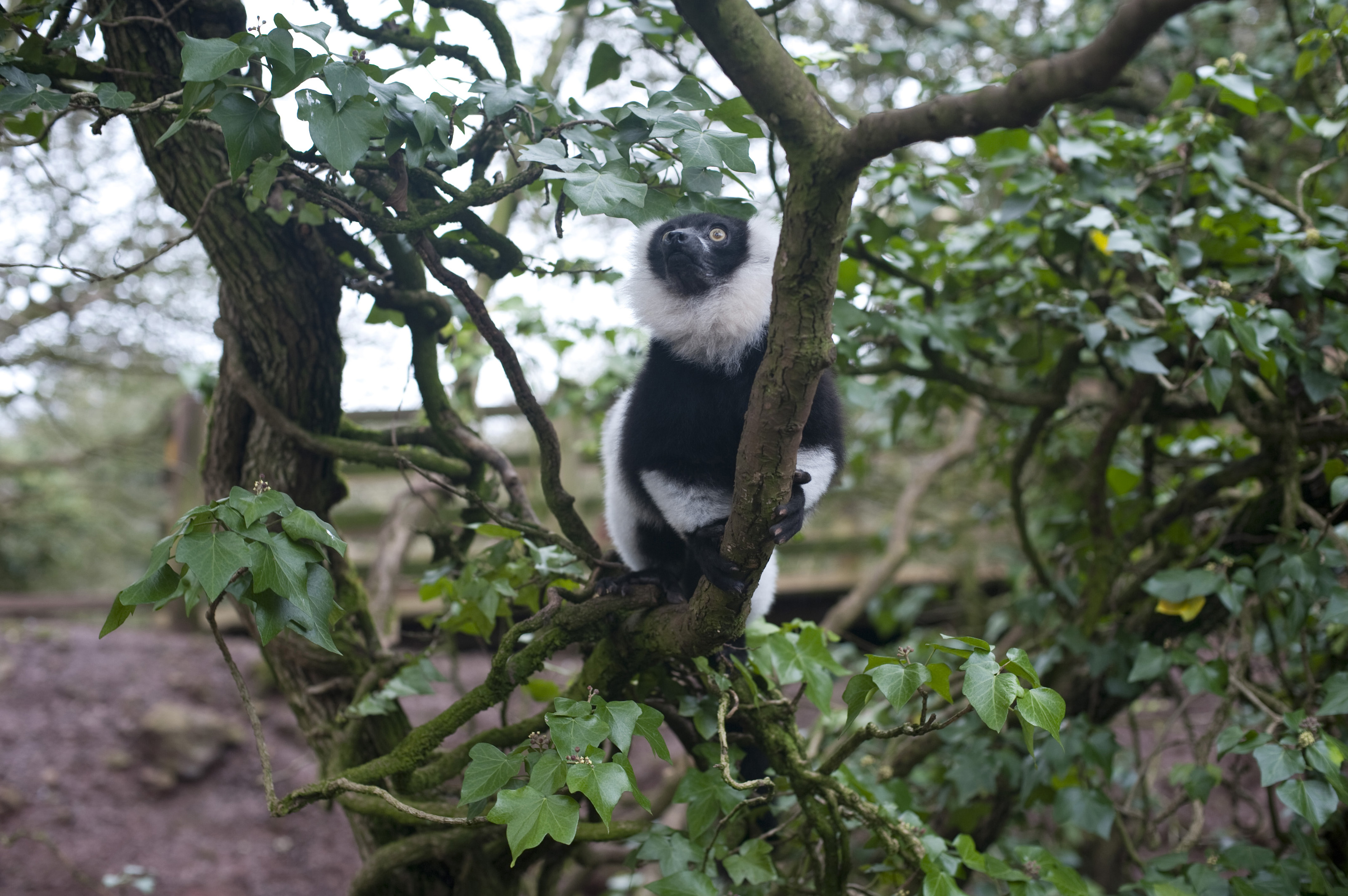 Keywords: white, black, wildlife, tree, wild, branch, animal, mammal, zoology, primate, captivity, climbing, arboreal, lemur, madagascan