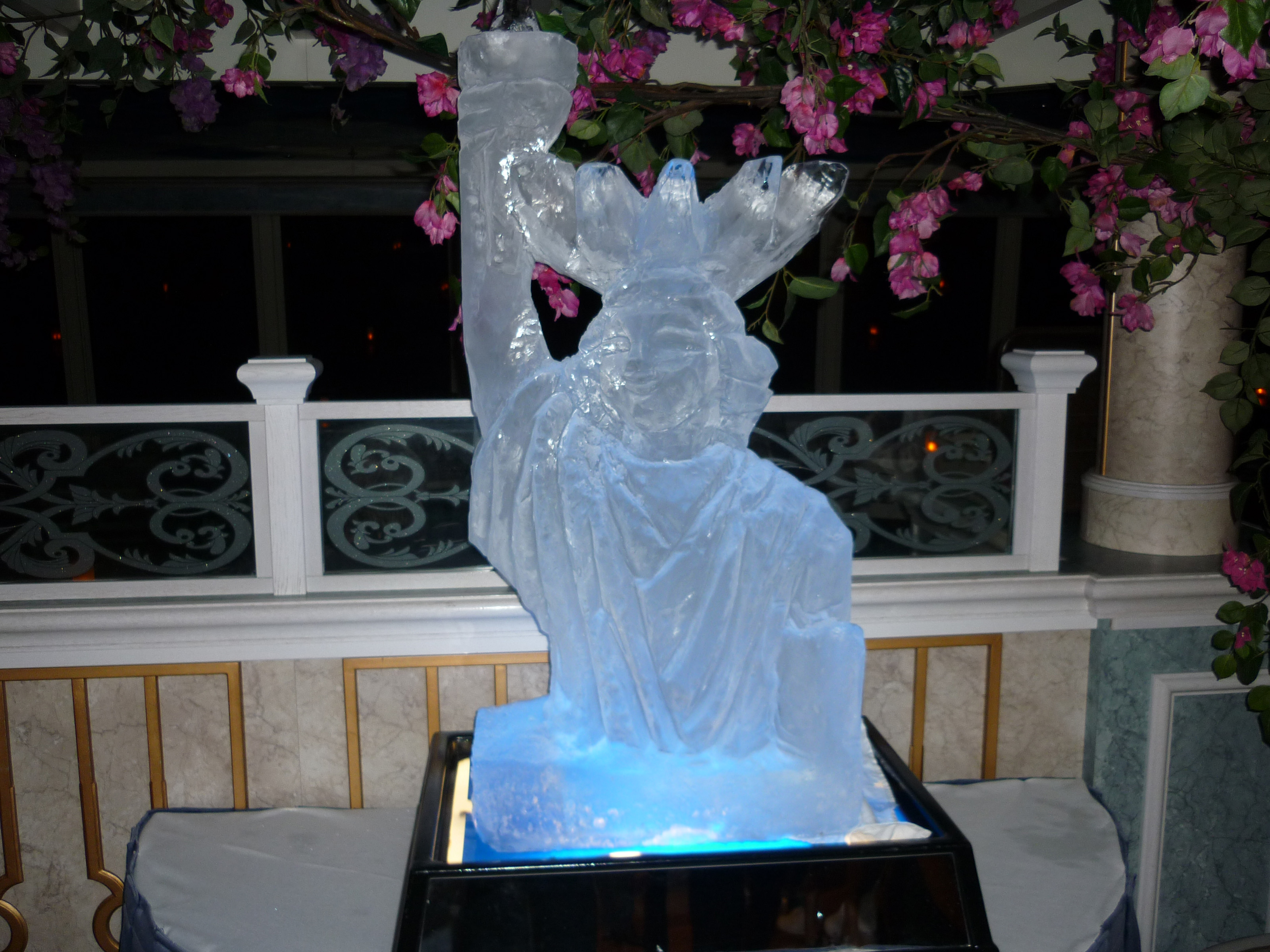 Keywords: ice, statue, sculpture, liberty, artwork, bottom, display, illuminated, blue, artistic, carved, american, flowers, decorative, decor