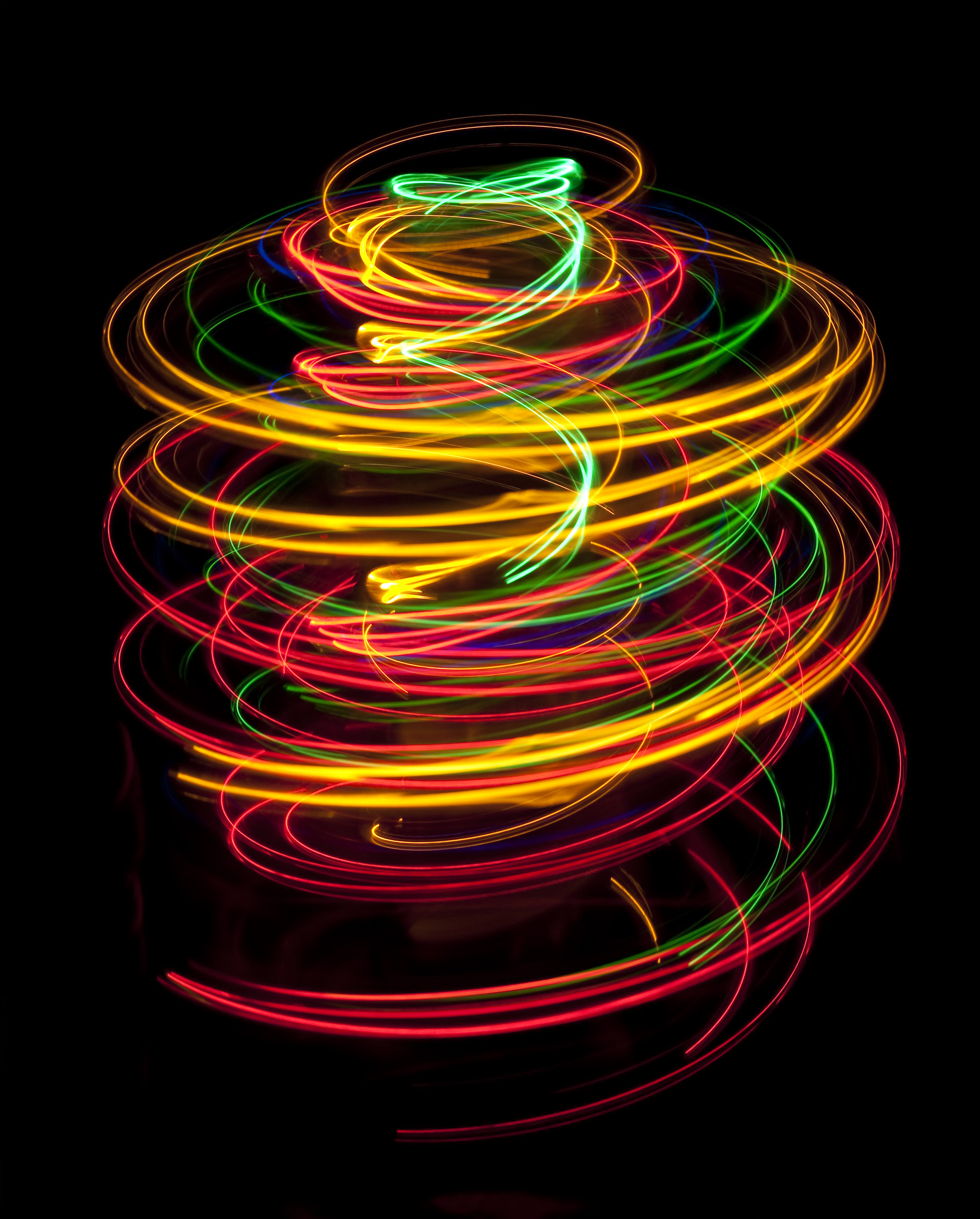 Keywords: light, pattern, circles, trails, trace, circle, colour, color, colorful, multi-colored, multicoloured, bright, saturated, glowing, abstract, unusual, eye catching, helix, helical