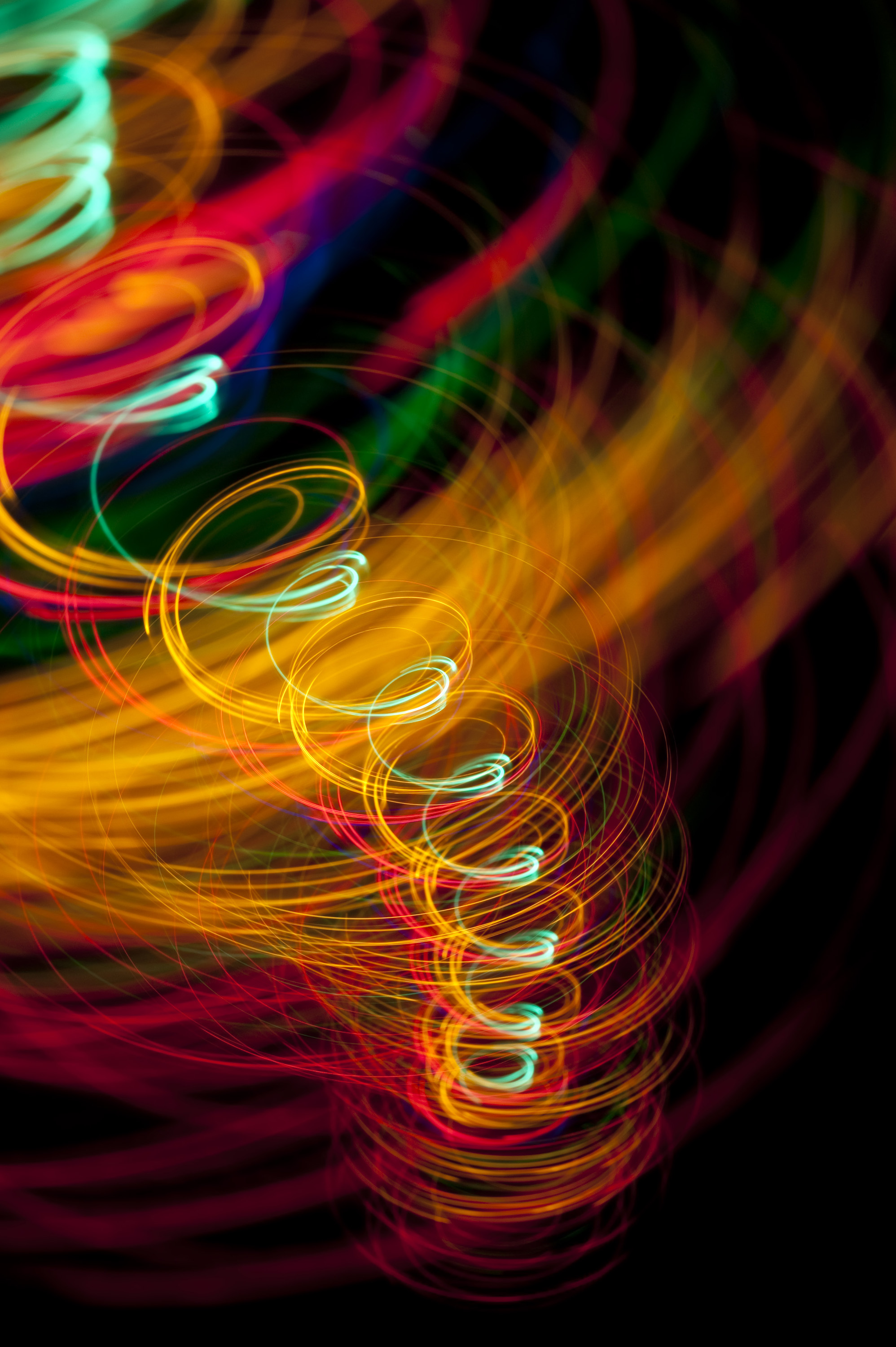 Keywords: light, pattern, circles, trails, trace, circle, colour, color, colorful, multi-colored, multicoloured, bright, saturated, glowing, abstract, unusual, eye catching, spiral, helix, helical