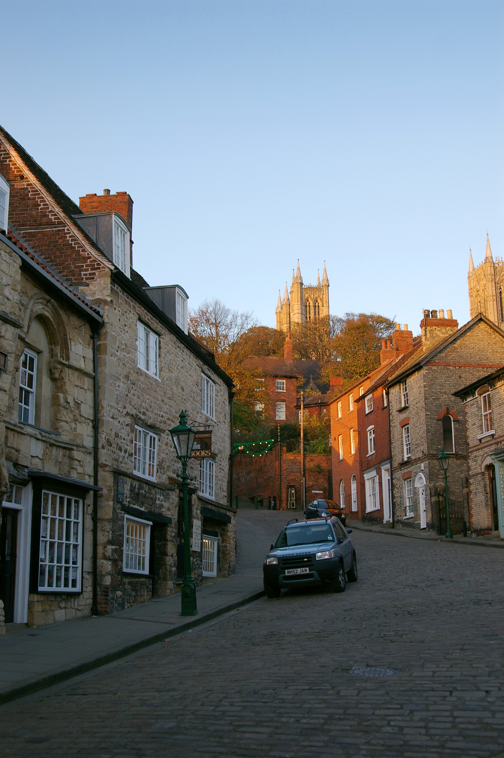 Keywords: lincoln, uk, england, stone, street cobbles, hill, sunset, cathedral, tower, quaint, historic, pretty