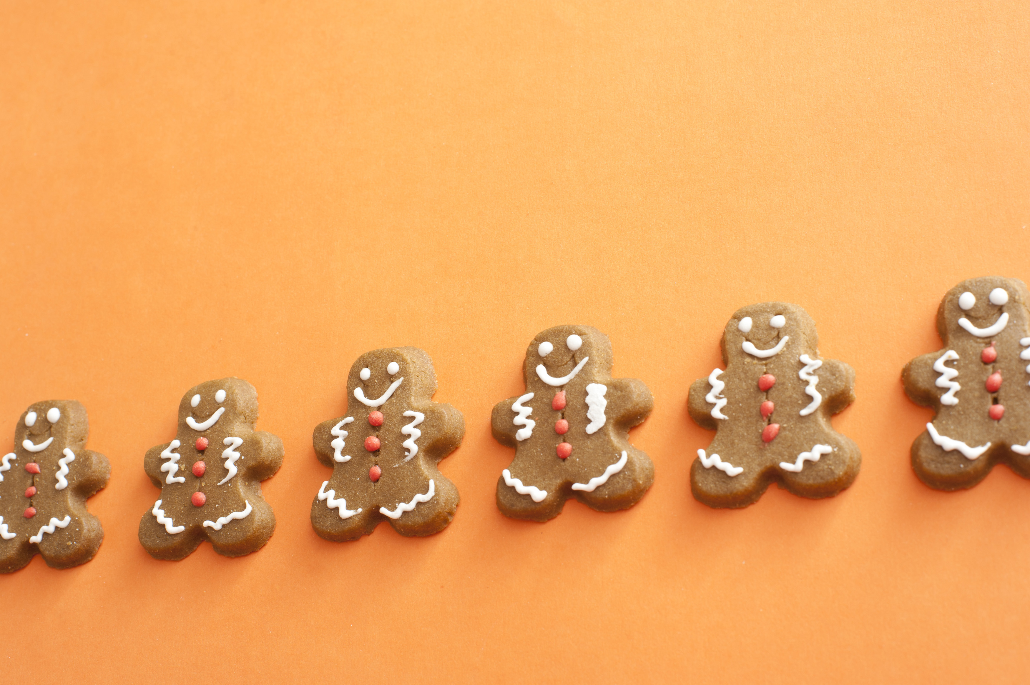 12338 Slanted row of gingerbread men cookies - this image by freefoodphotos is licensed under a Creative Commons Attribution 3.0 Unported License.