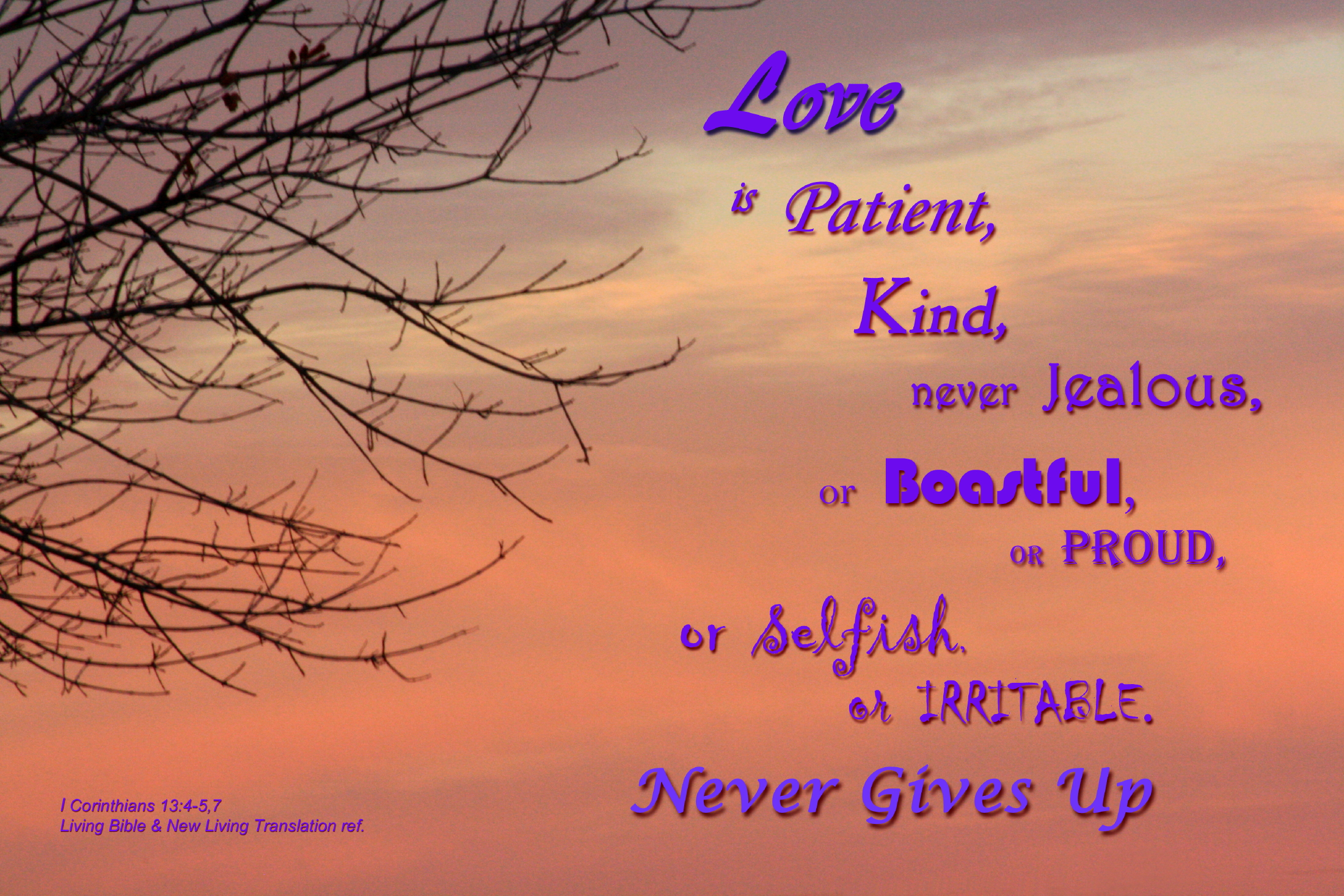 Keywords: Bible, sky, clouds, sunrise, tree, pink