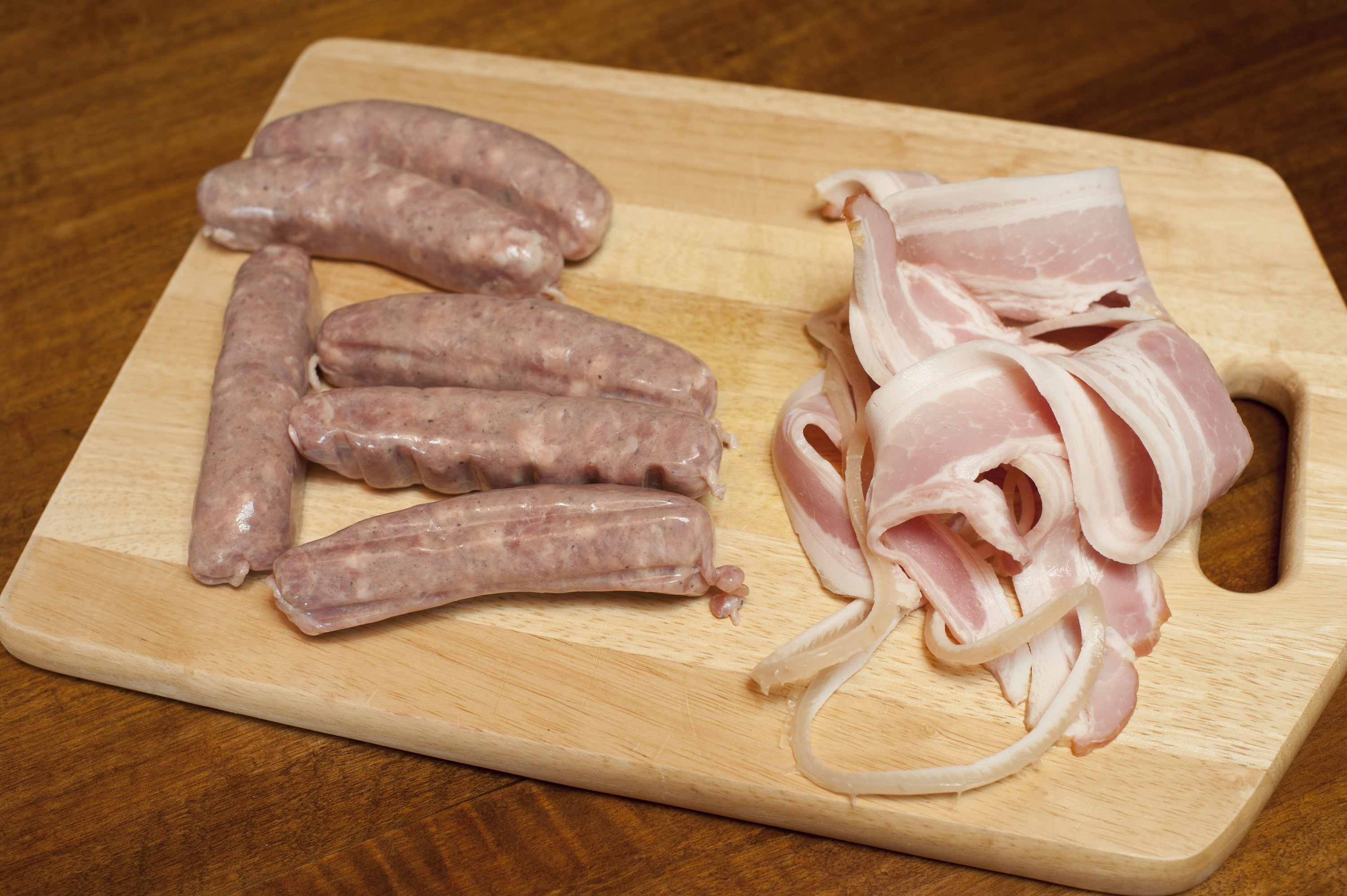 Keywords: bacon, food, kitchen, meat, pig in a blanket, pork, rolls, sausage, spicy, ingredients, rashers, smoked, preparation, uncooked, culinary