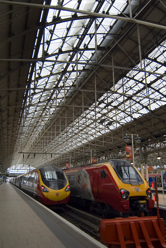 two virgin trains at manchesters piccadilly railway station