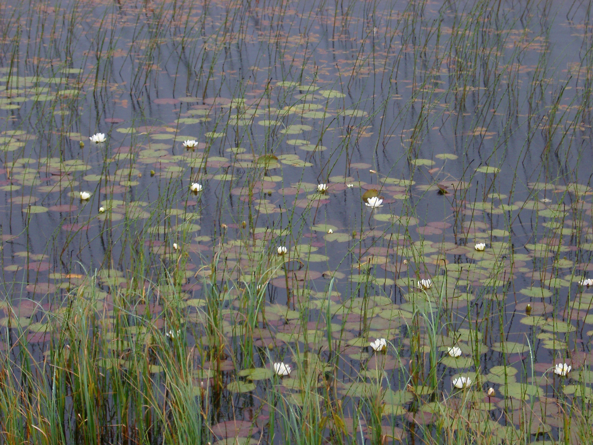 lily pads and grasses in a marshland pond