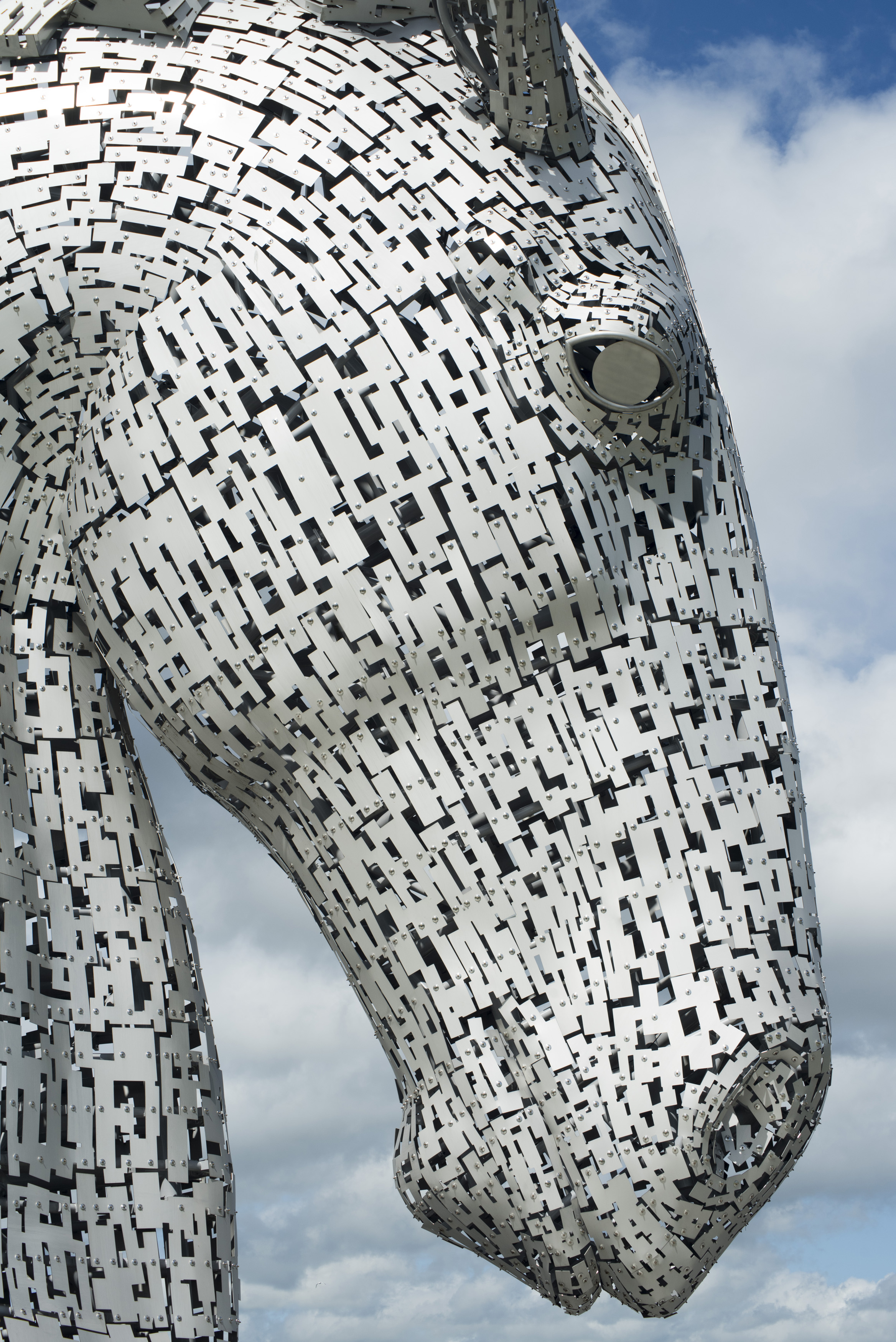 Keywords: artwork, commemorative, falkirk, horse, kelpies, landmark, statue, tourist attraction, travel, scotland, scottish, closeup, industry, profile, head