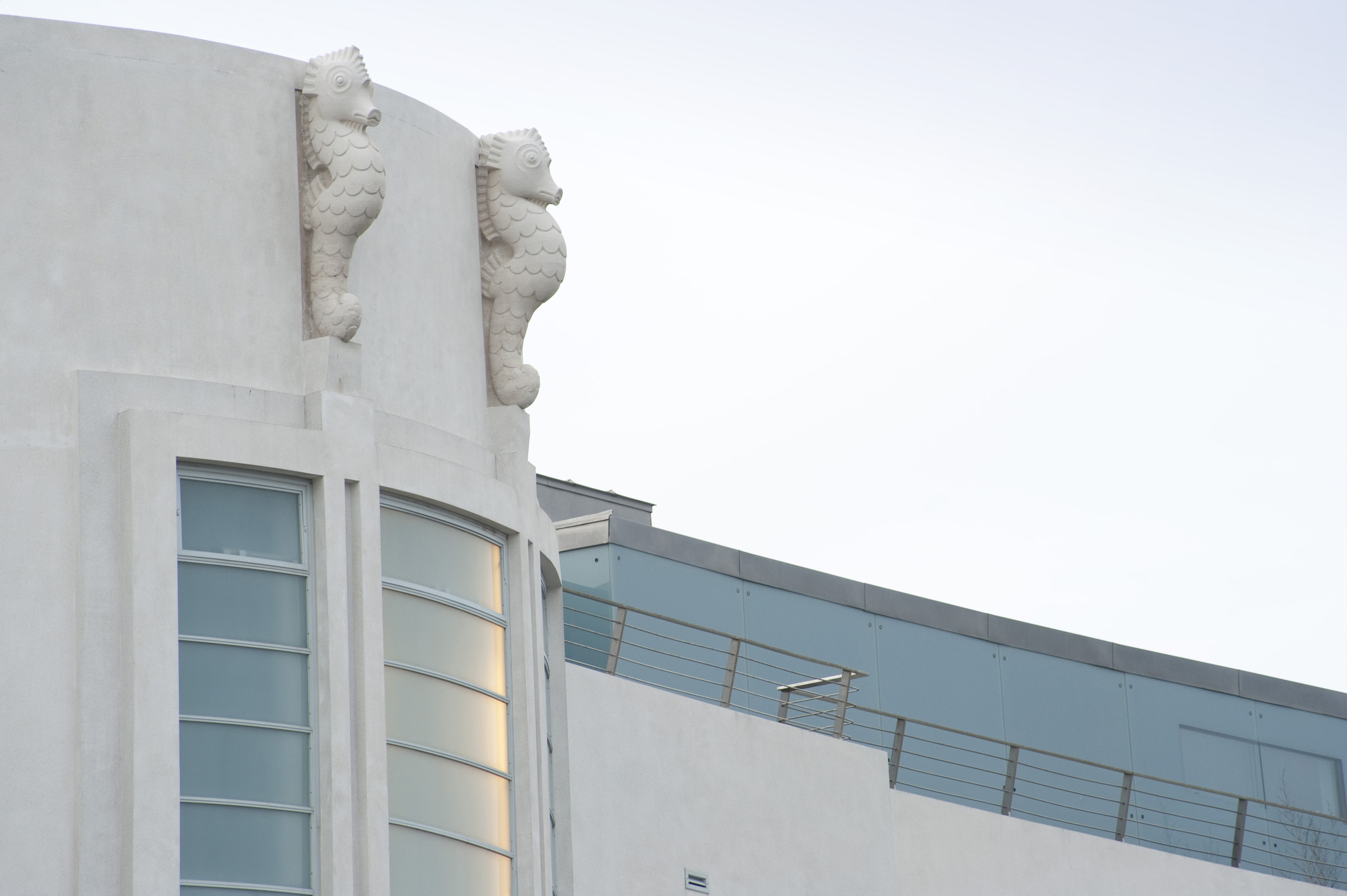 Keywords: morecambe, lancashire, england, wall, detail, architectural, exterior, sculpture, sea horse, art deco, midland hotel, style, iconic, building, hospitality, accomodation, streamline moderne, seahorses, adornment, ornamentation