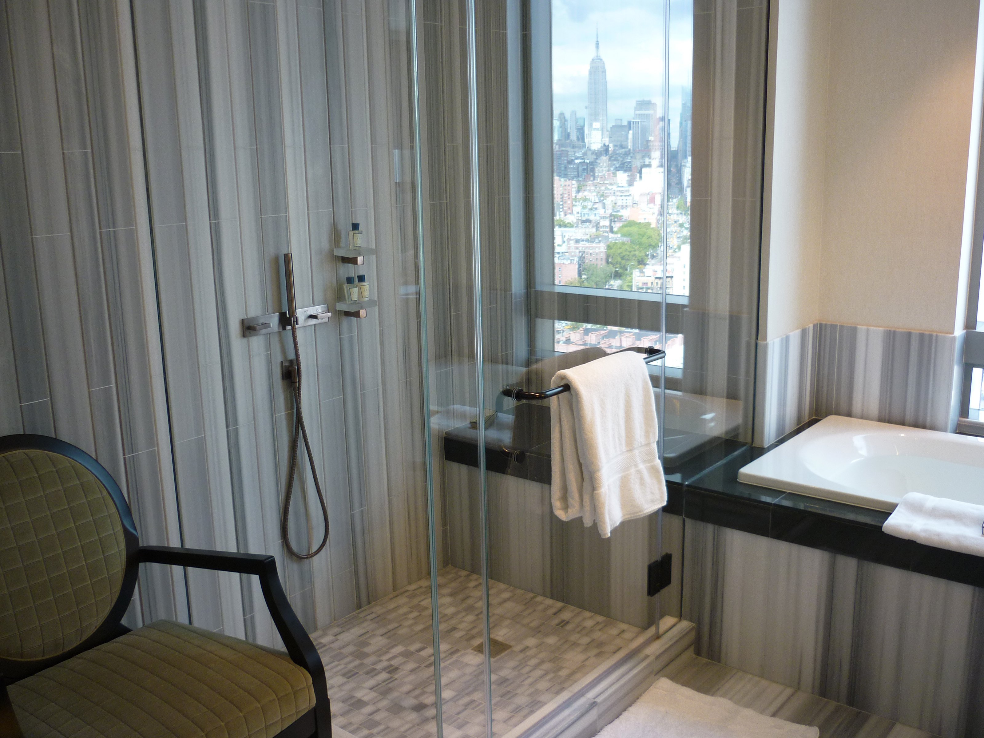 Keywords: modern, chair, window, view, interior, towel, shower, linen, cubicle, hotel, bathroom, hygiene, cleanliness, basin, plumbing