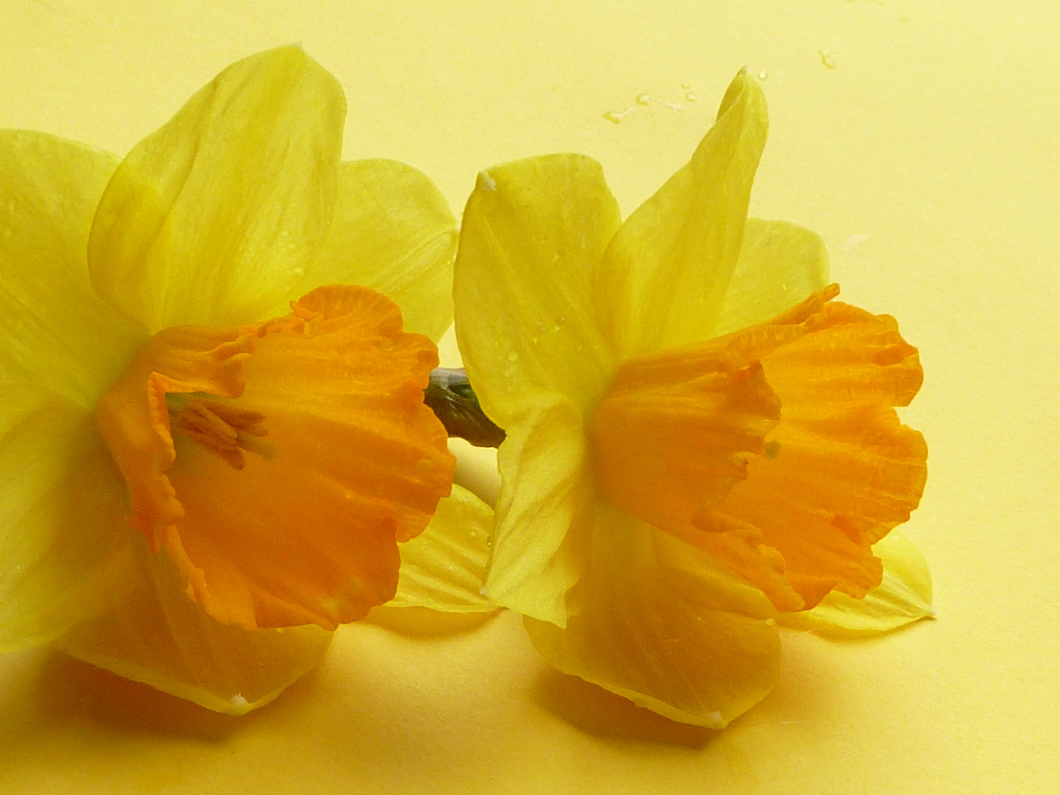 17358 Two colorful yellow fresh cut daffodil flowers - this image by easterstockphotos is licensed under a Creative Commons Attribution 3.0 Unported License.