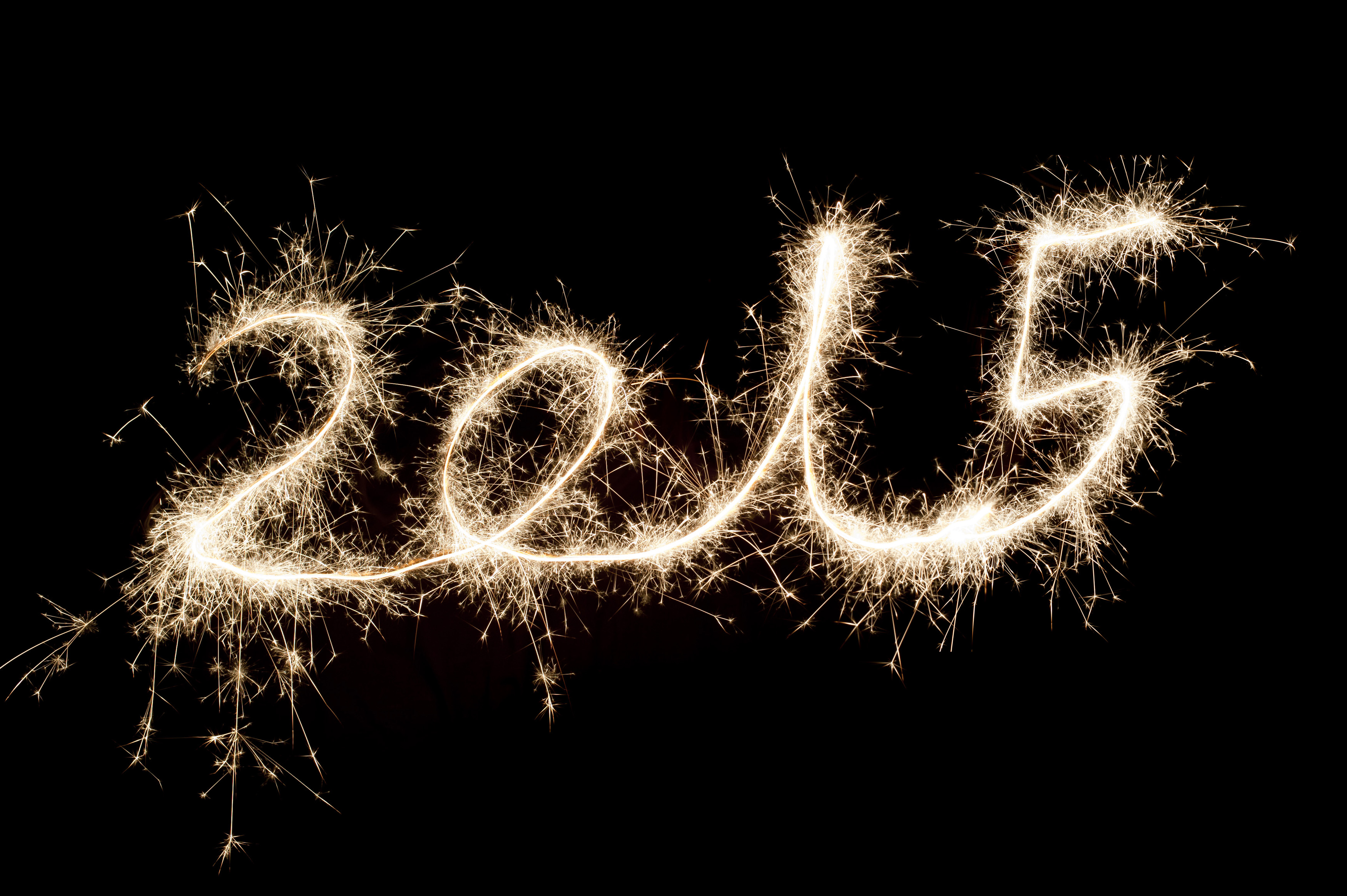 sparkling trails of light drawing out the numbers 2015 in glowing light to welcome in the new year
