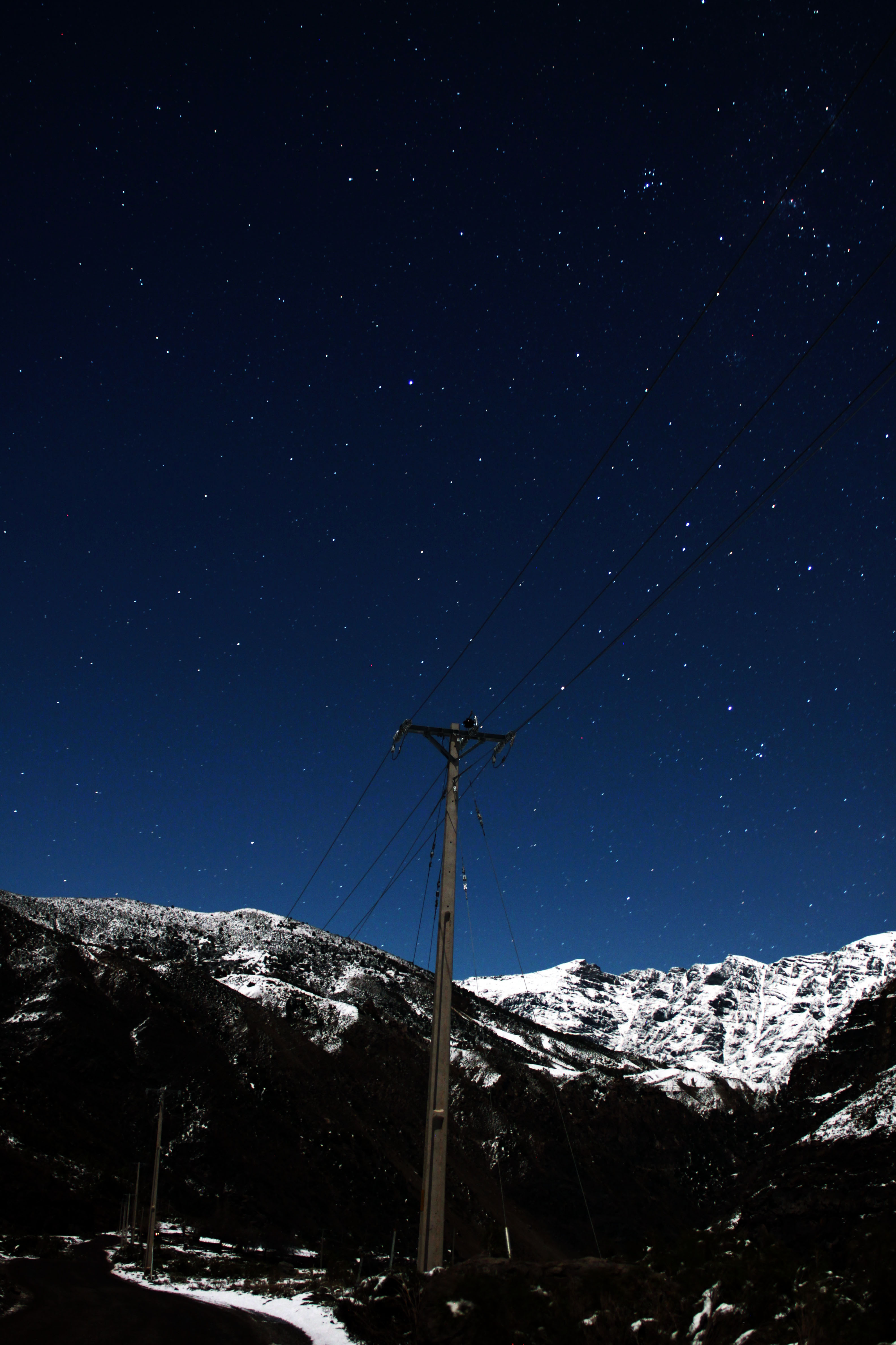 Keywords: stars, low key, sky, snow, winter, cold, chilie, power line, dark
