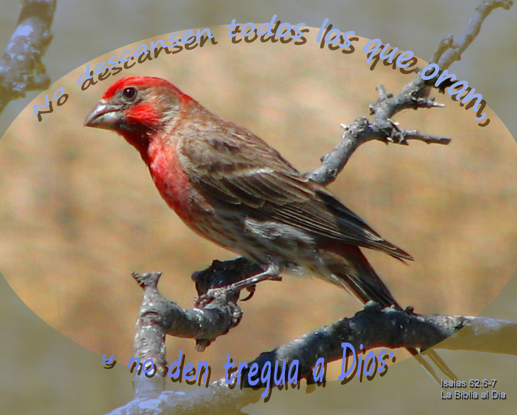 House Finch on branchPhoto Title: No Descansen-Oran