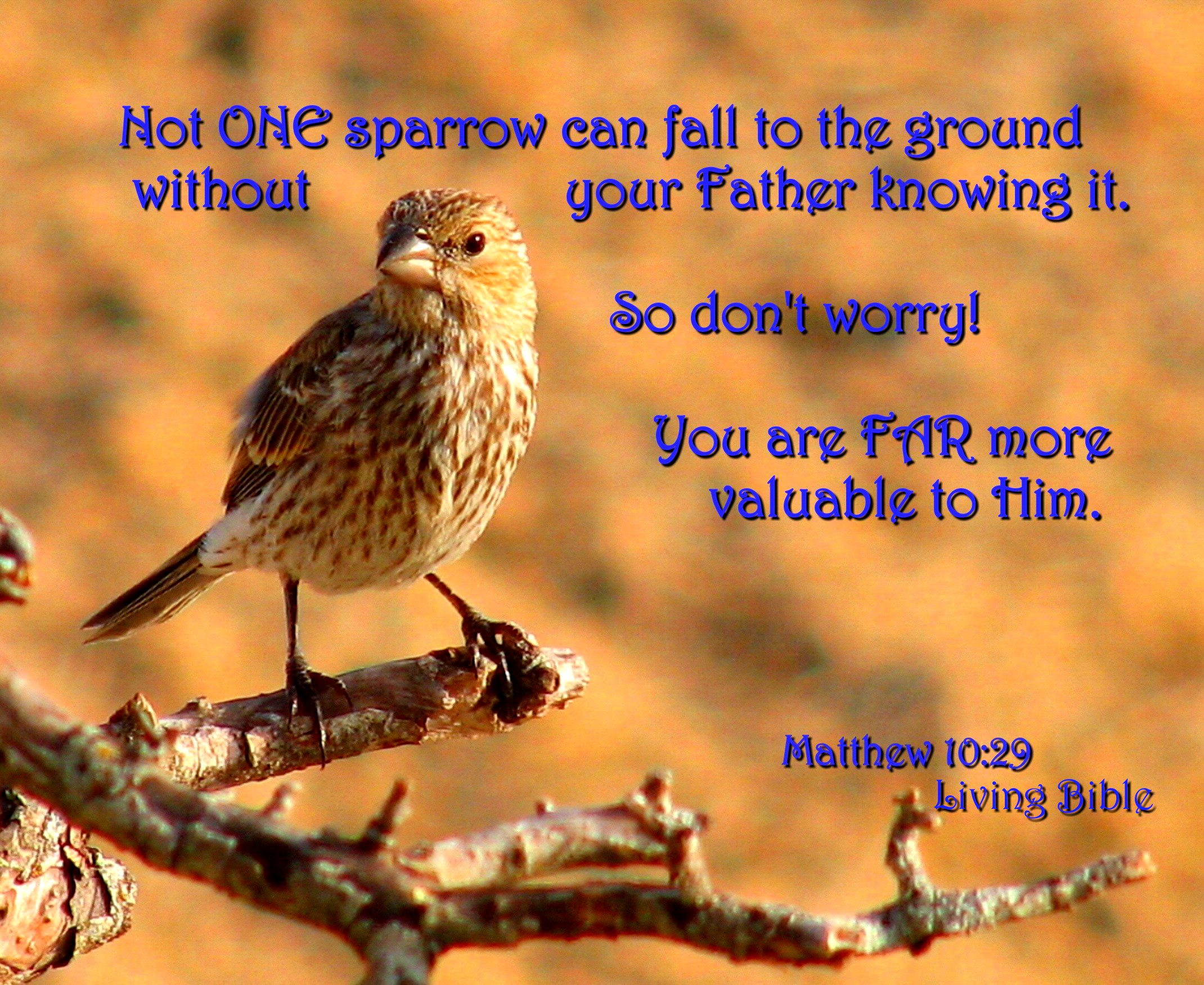 Keywords: Bible, inspirational, verse, sparrow, bird, branch