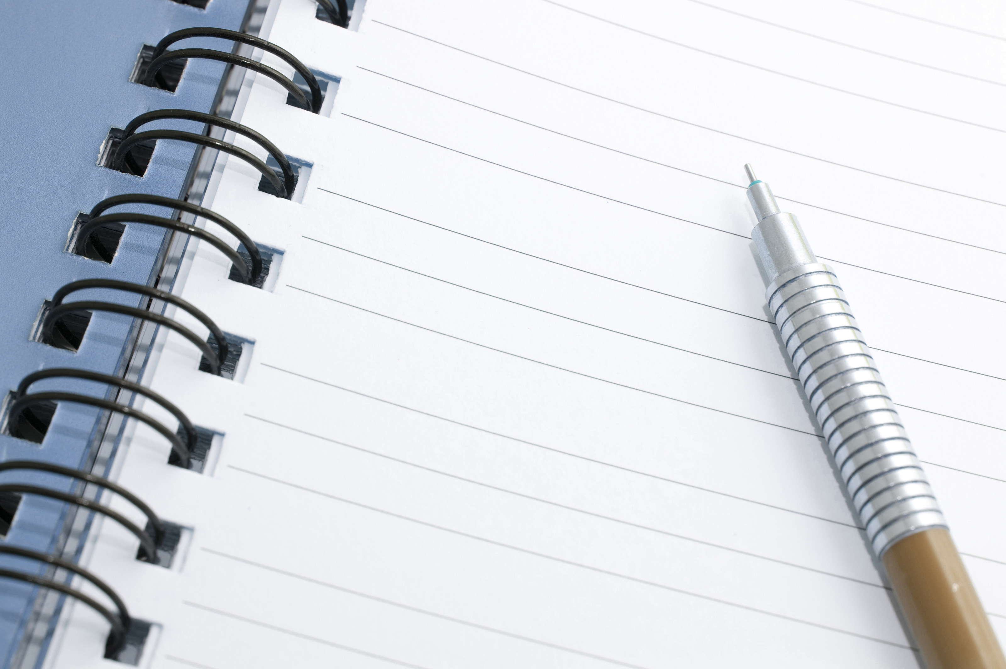 Keywords: blank, paper, write, silver, open, lines, notebook, book, page, pencil, mechanical, notes, notepad, lined, ringbound