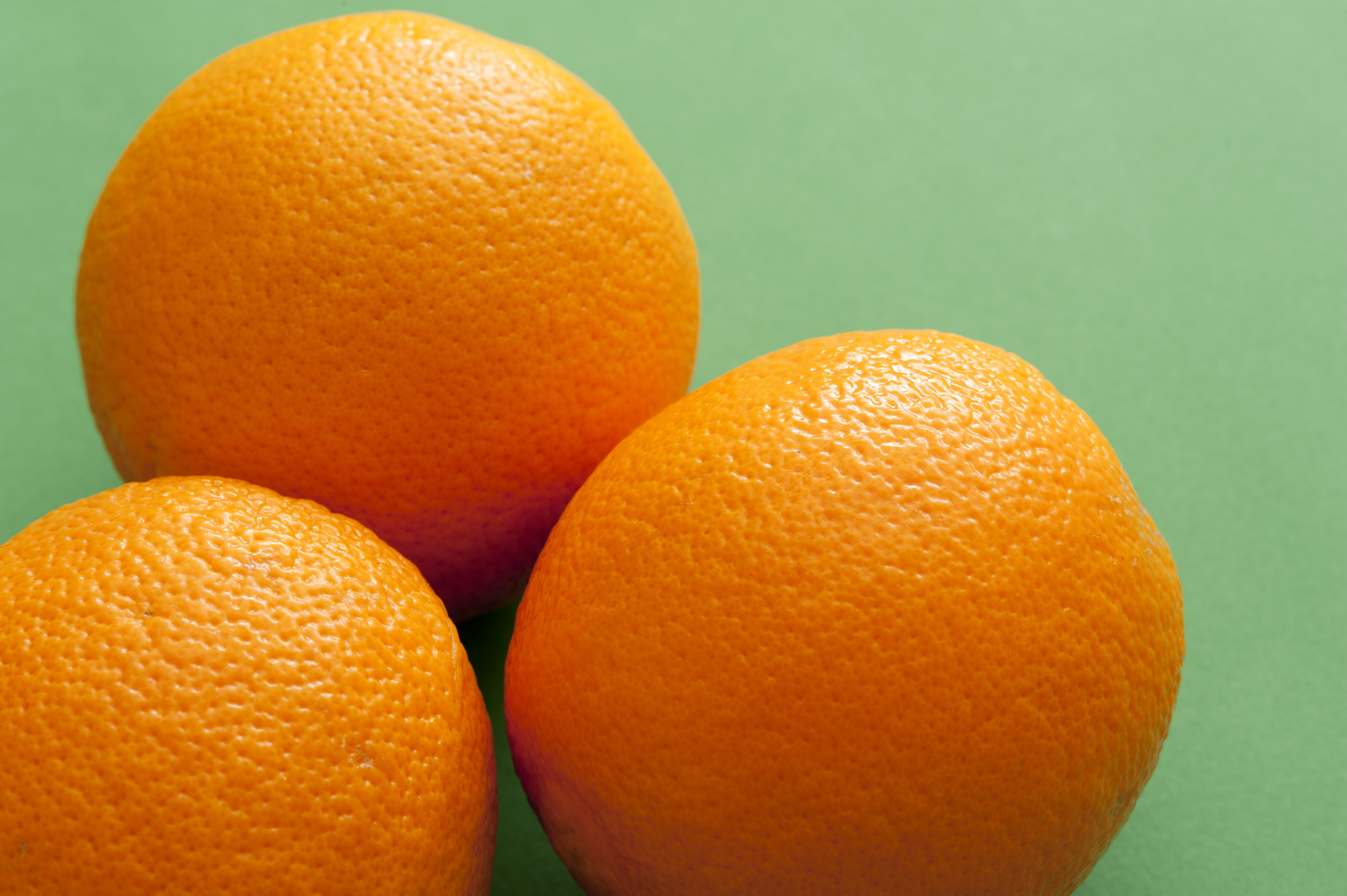 11793 Three whole ripe oranges on green background - this image by freefoodphotos is licensed under a Creative Commons Attribution 3.0 Unported License.