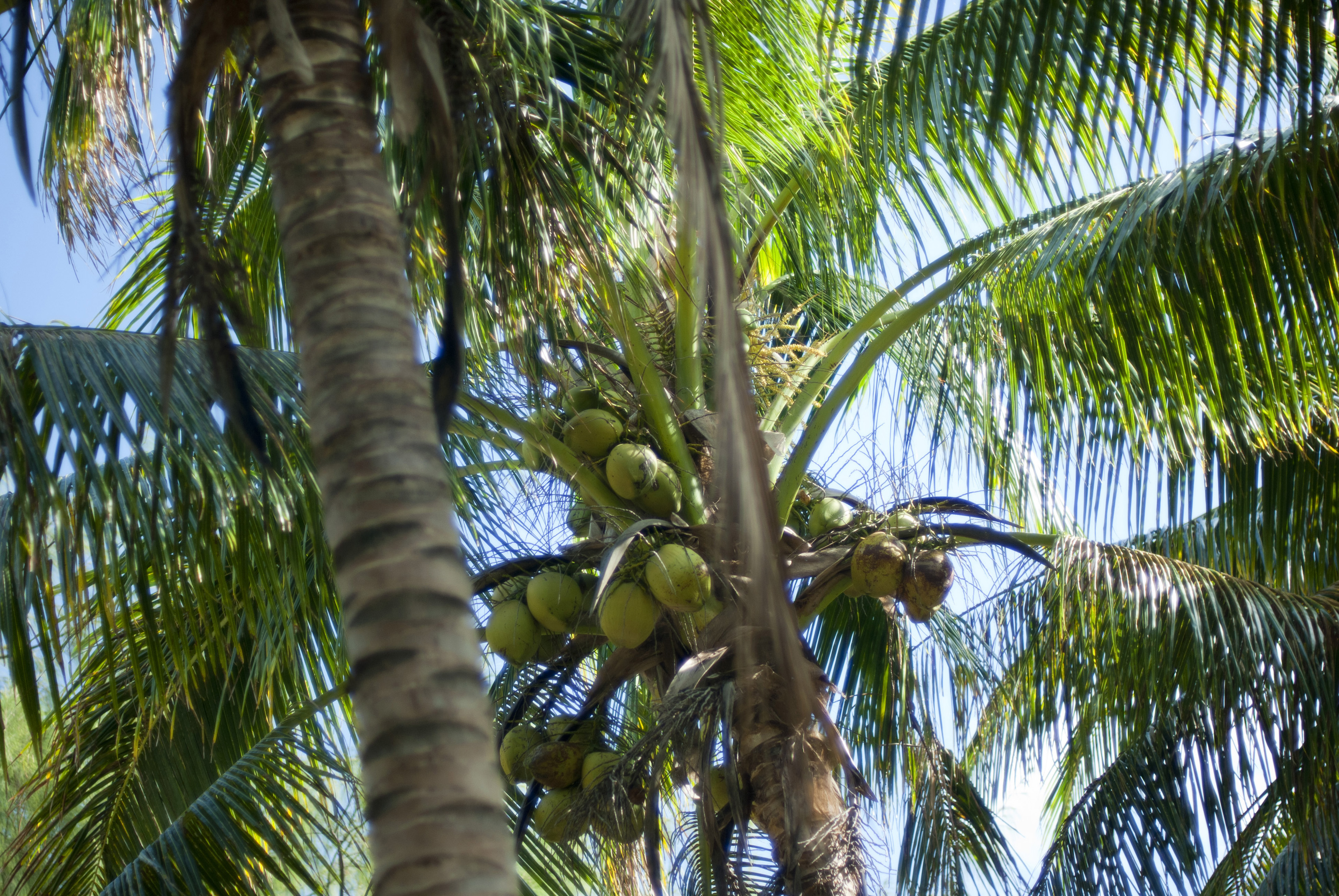 Keywords: fiji, vacation, tropical, plant, fruit, tree, palm, growing, fronds, husks, crop, symbolic, food, travel, coconut