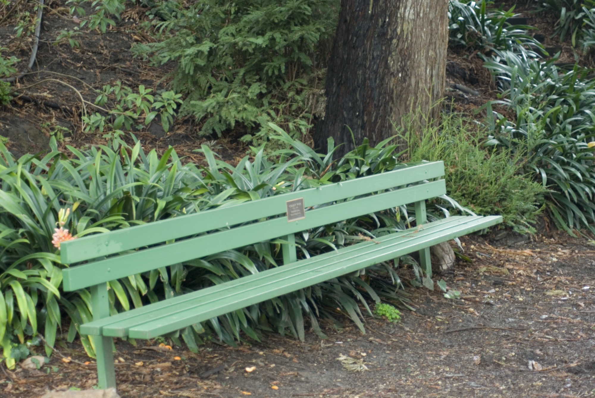 a green park bench in a san francisco park