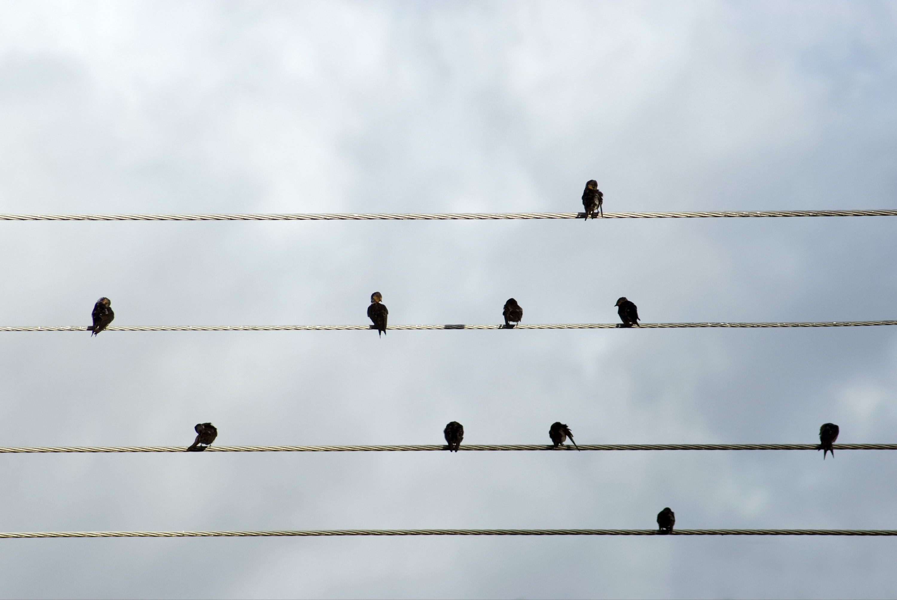 Keywords: wildlife, silhouette, social, avian, many, animal, electrical, wires, flight, feathers, wings, preening, birds, perching, plumage