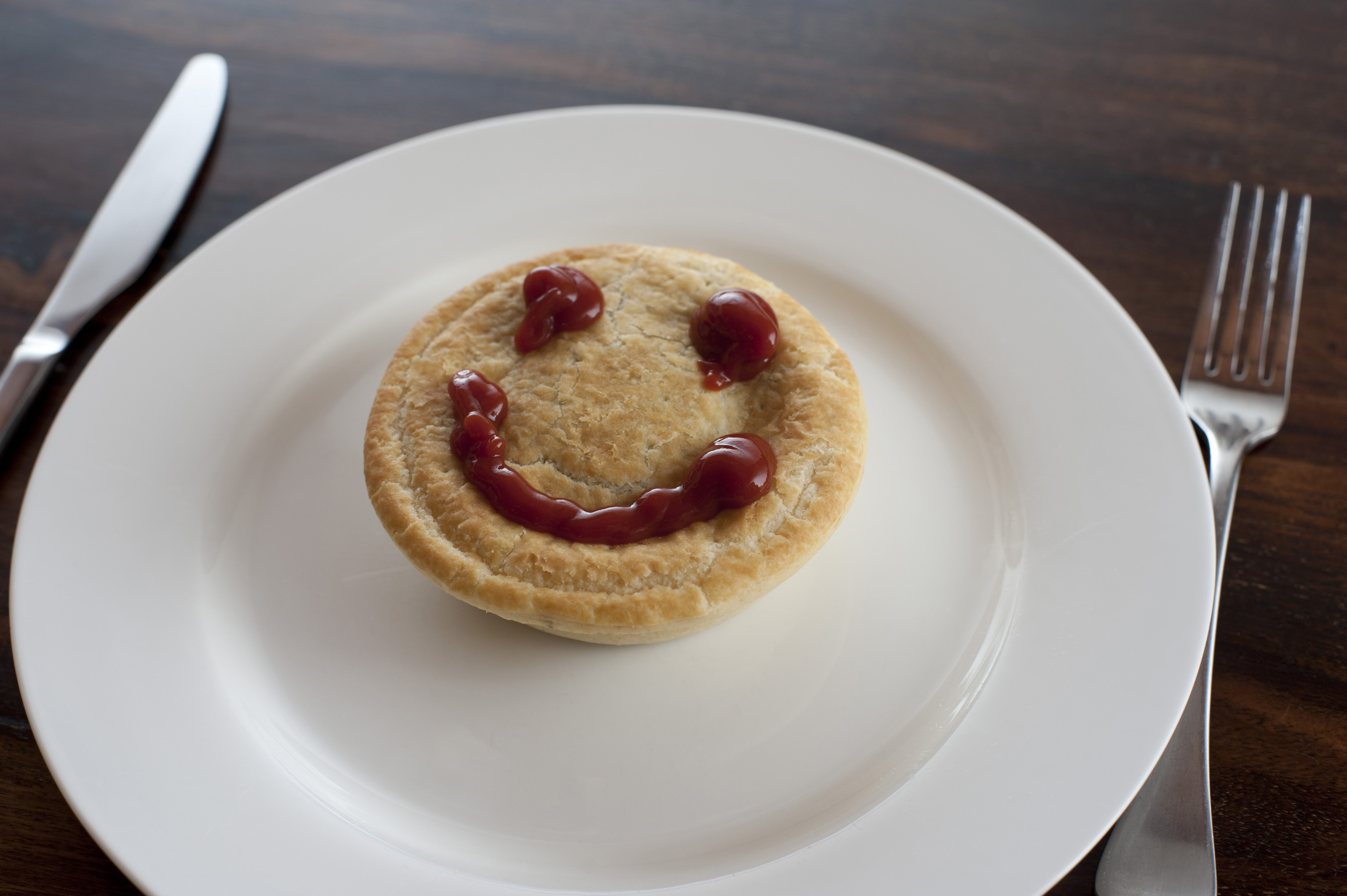10488 Meat pie with a smiley gravy face - this image by gratuit is licensed under a Creative Commons Attribution 3.0 Unported License.