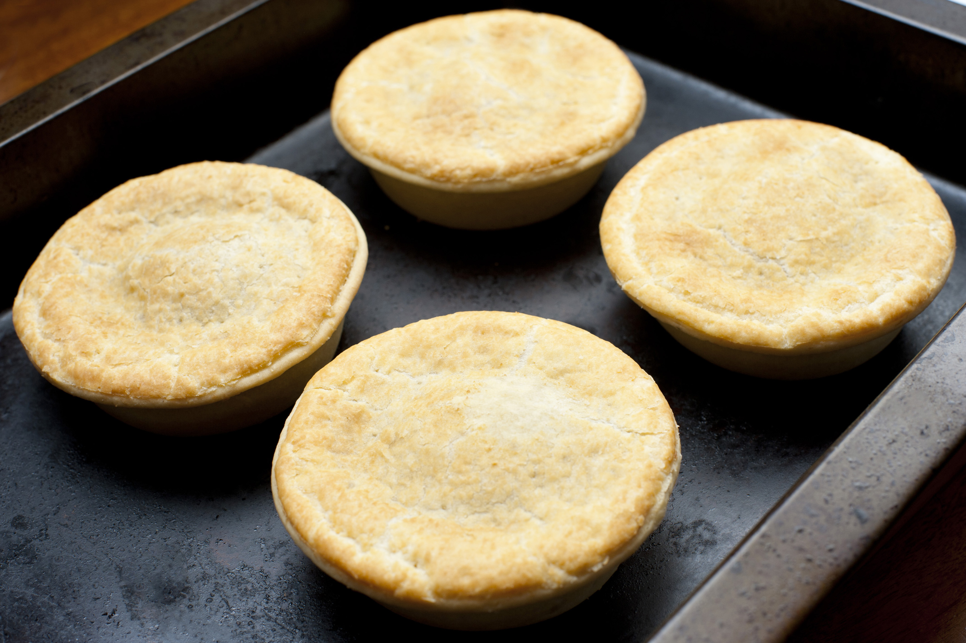 Photo Title: Freshly Cooked Delicious Pies on Black Tray