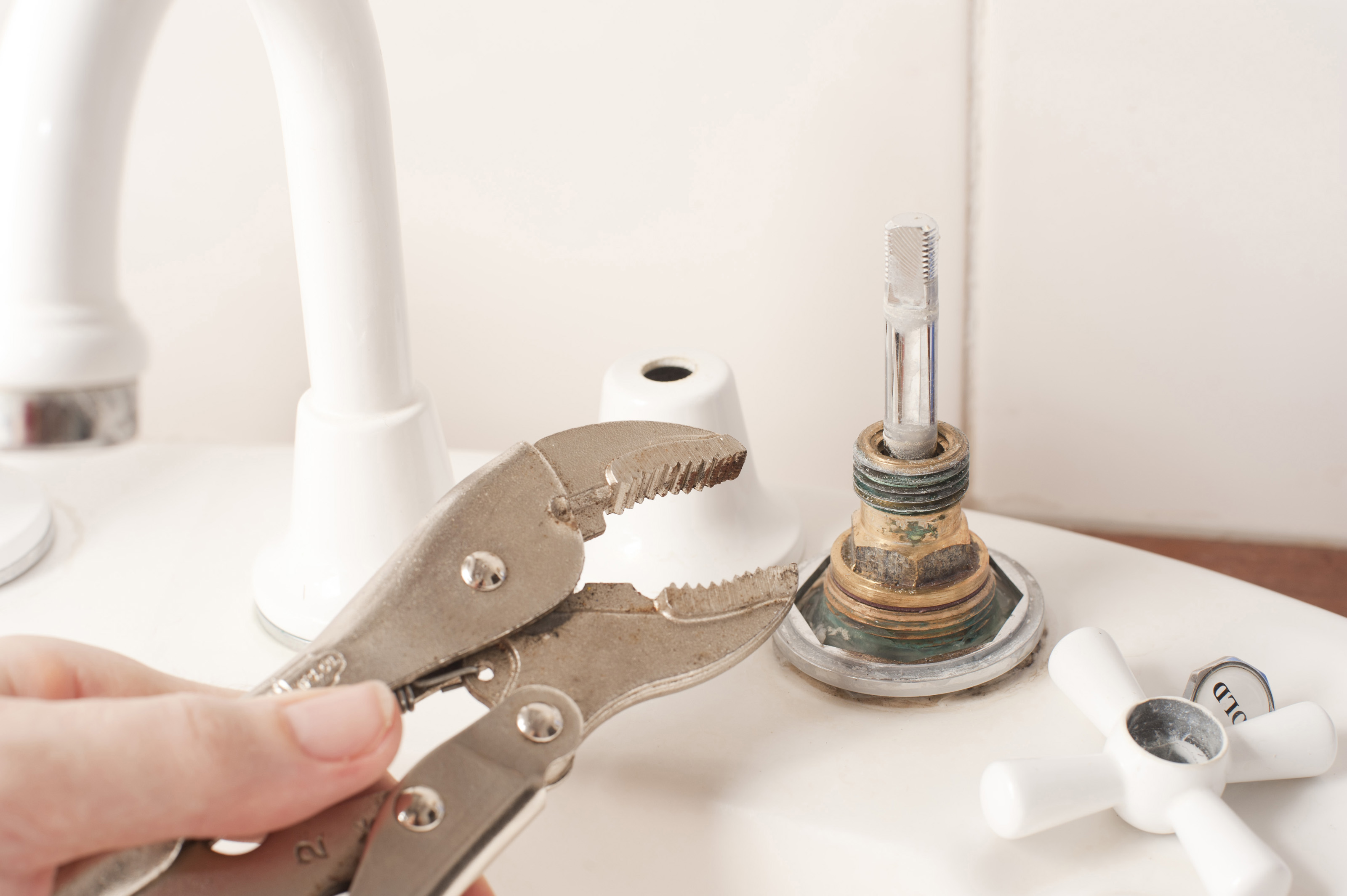 10176 Repairing a faucet with a mole grip pliers - this image by gratuit is licensed under a Creative Commons Attribution 3.0 Unported License.