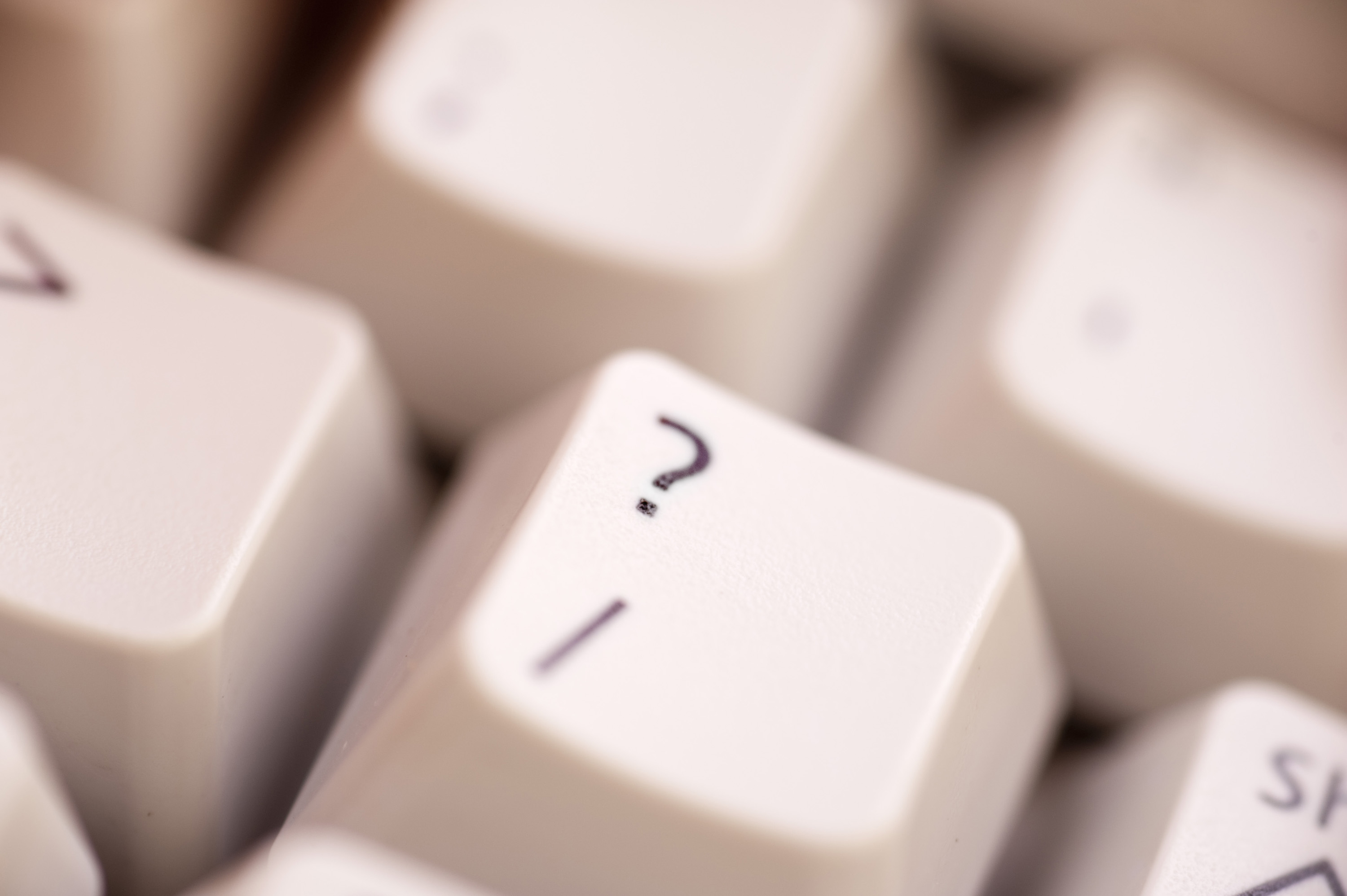 a keyboard question mark key under warm colour lighting