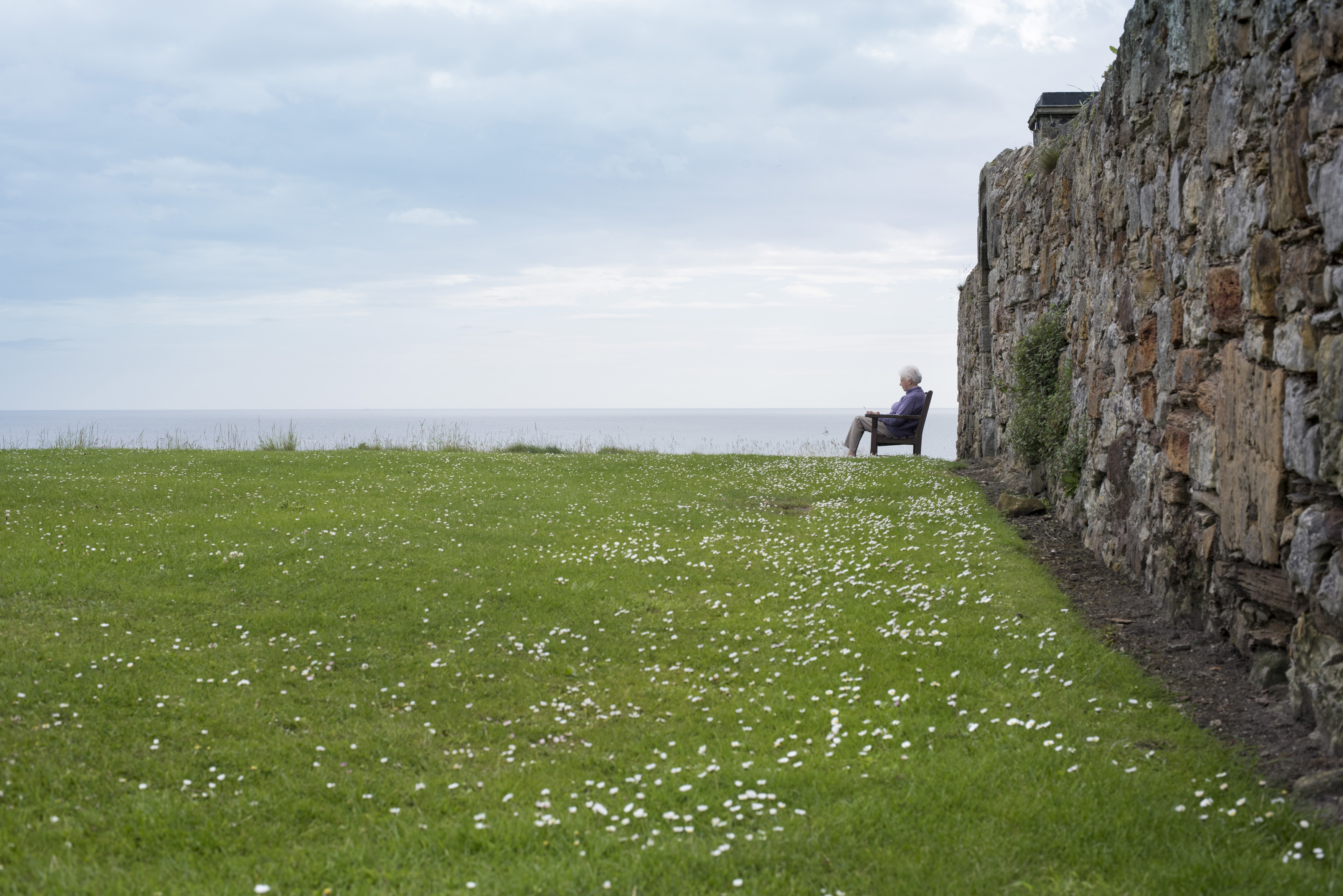Keywords: andrews, scotland, scottish, st, bench, cathedral, field, flowers, historic, person, ruined, ruins, scenic, summer, wall