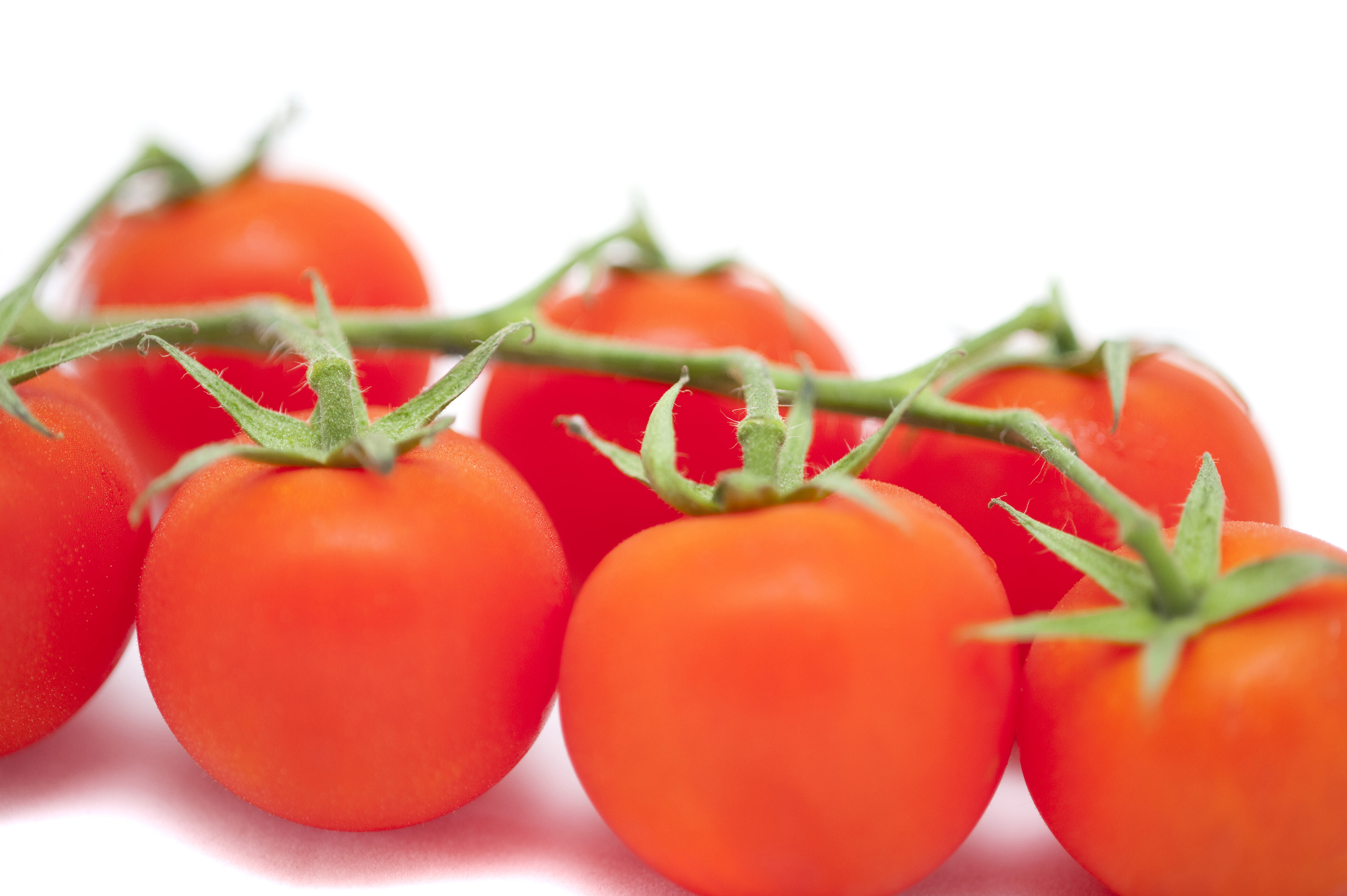 Keywords: tomatoes, red, fresh, healthy, stem, isolated, white, organic, ripe, vegetables, veggies, nutritious, newly harvest, vine, raw, red, green