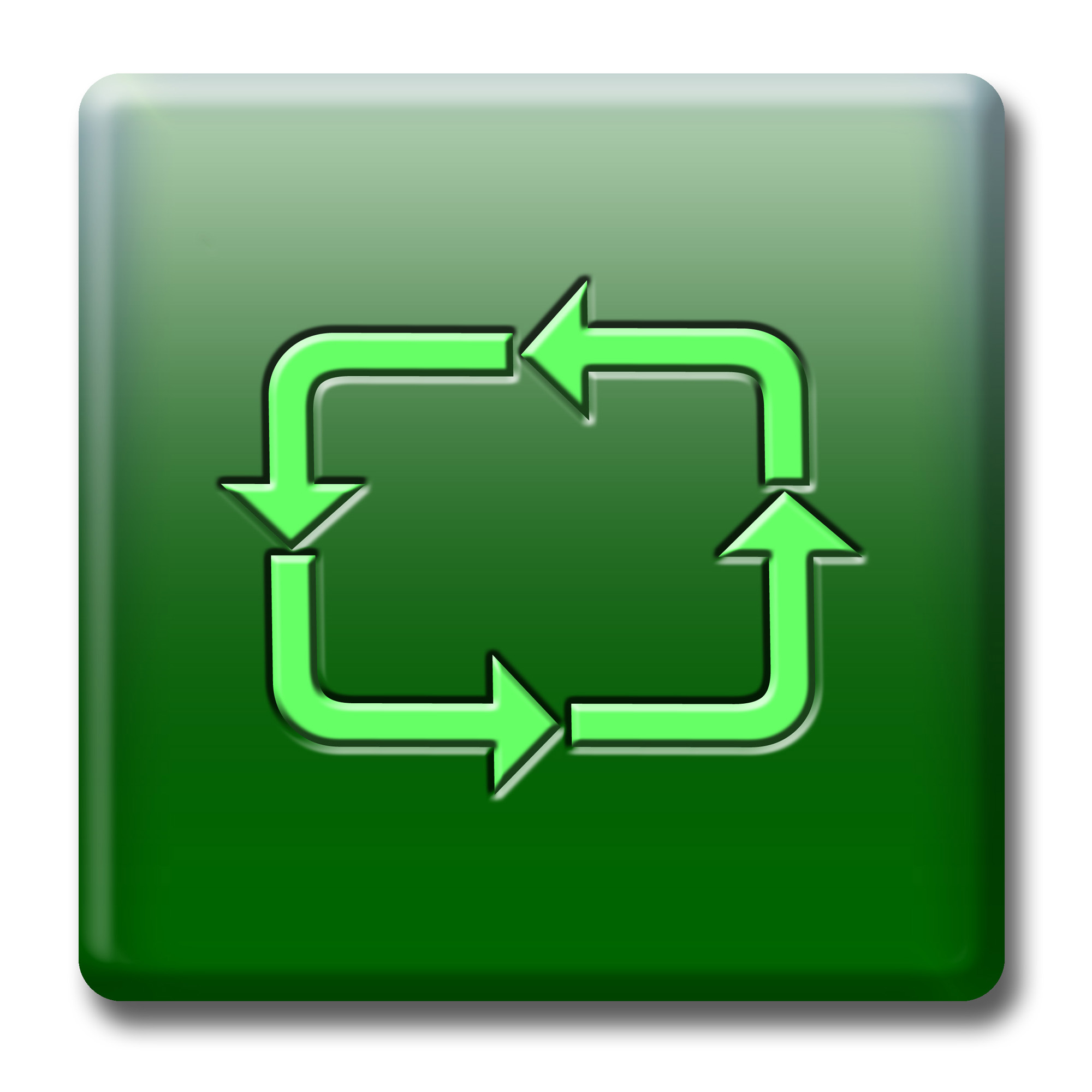 a green button with a recycle and reuse symbol