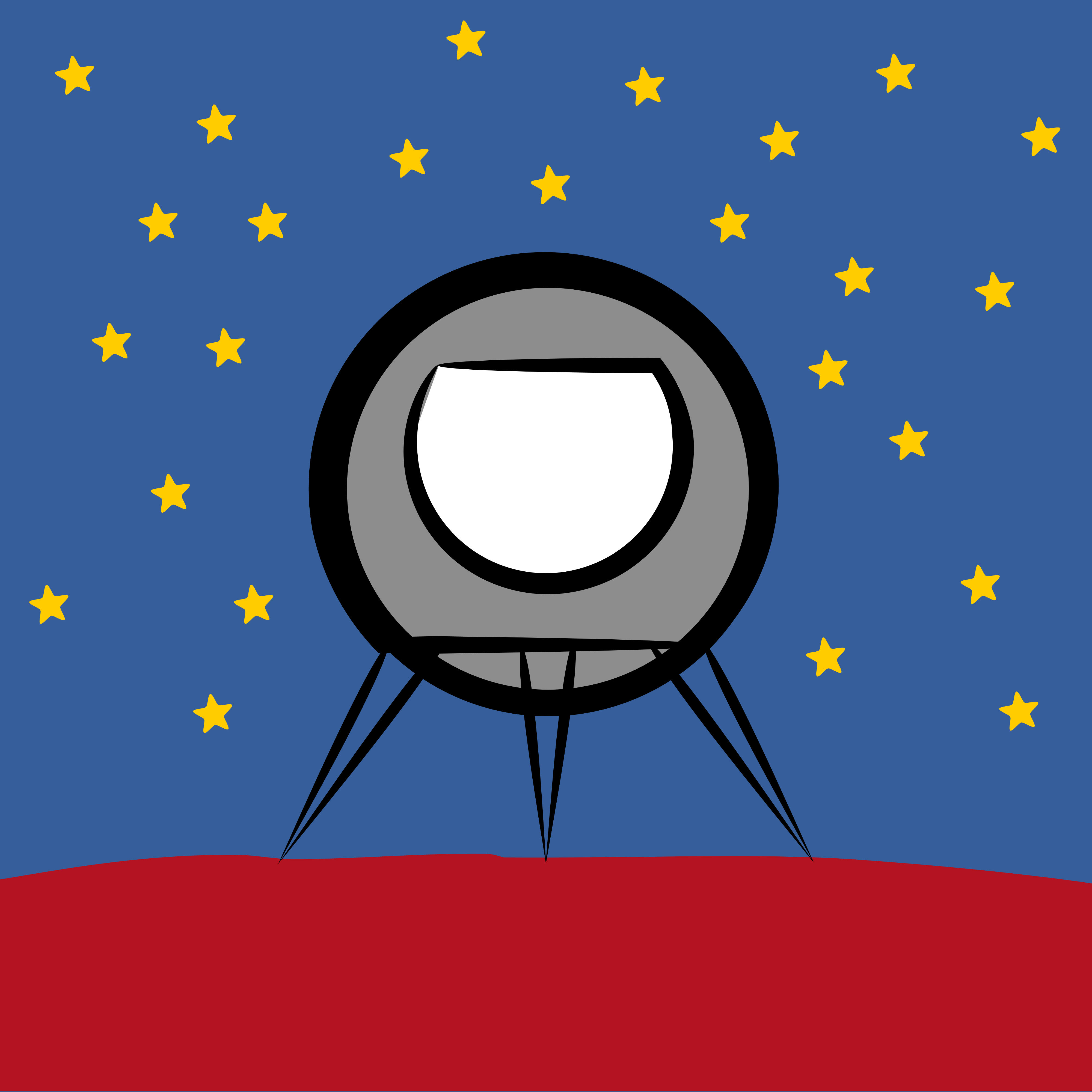 Illustration of a rocket sitting on the red planet with gold stars in the background.