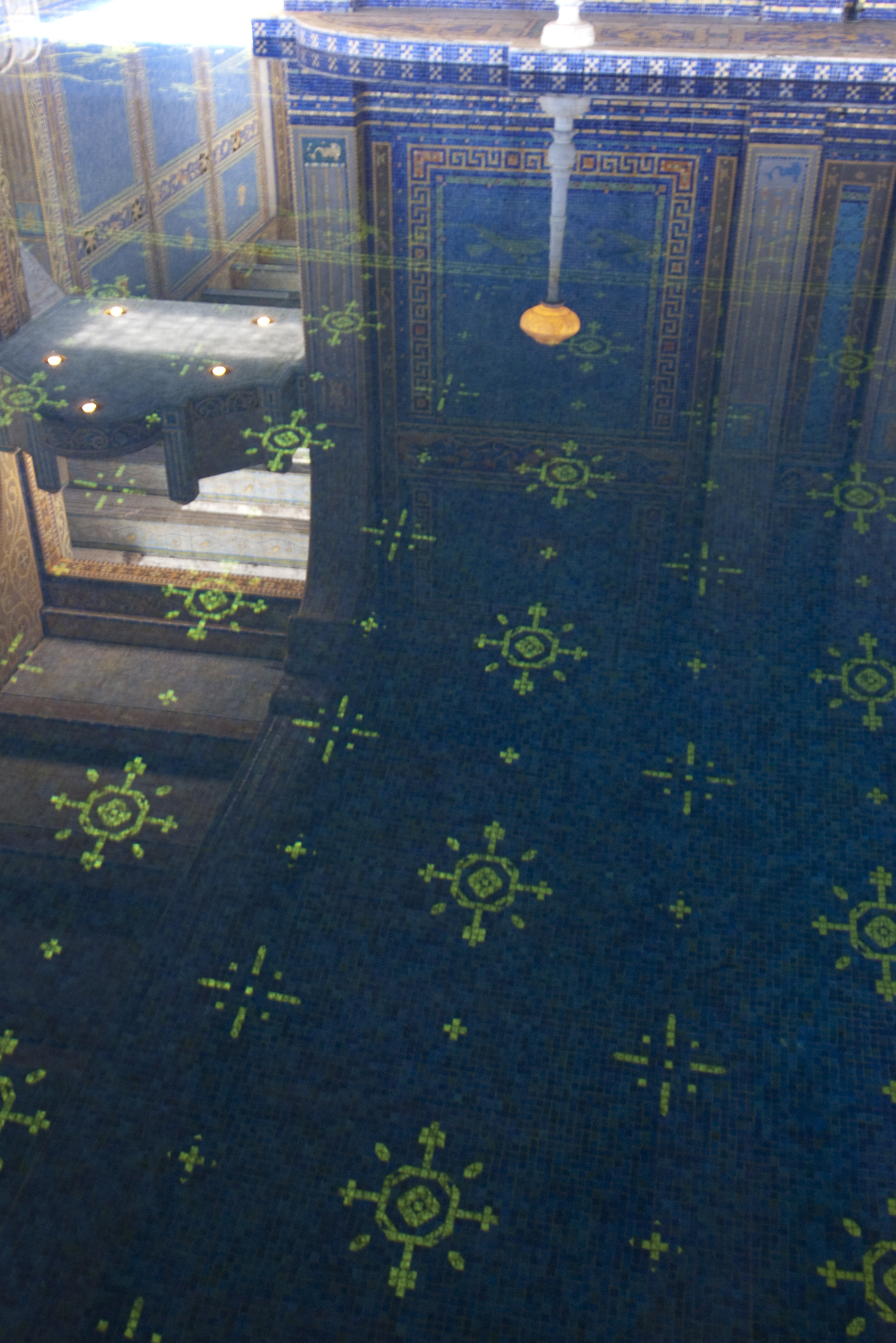 Keywords: california, Hearst Castle, san simeon, historic, tourist attraction, indoor pool, blue azure pool, water, bath, roman baths, mosaic tiles, interior