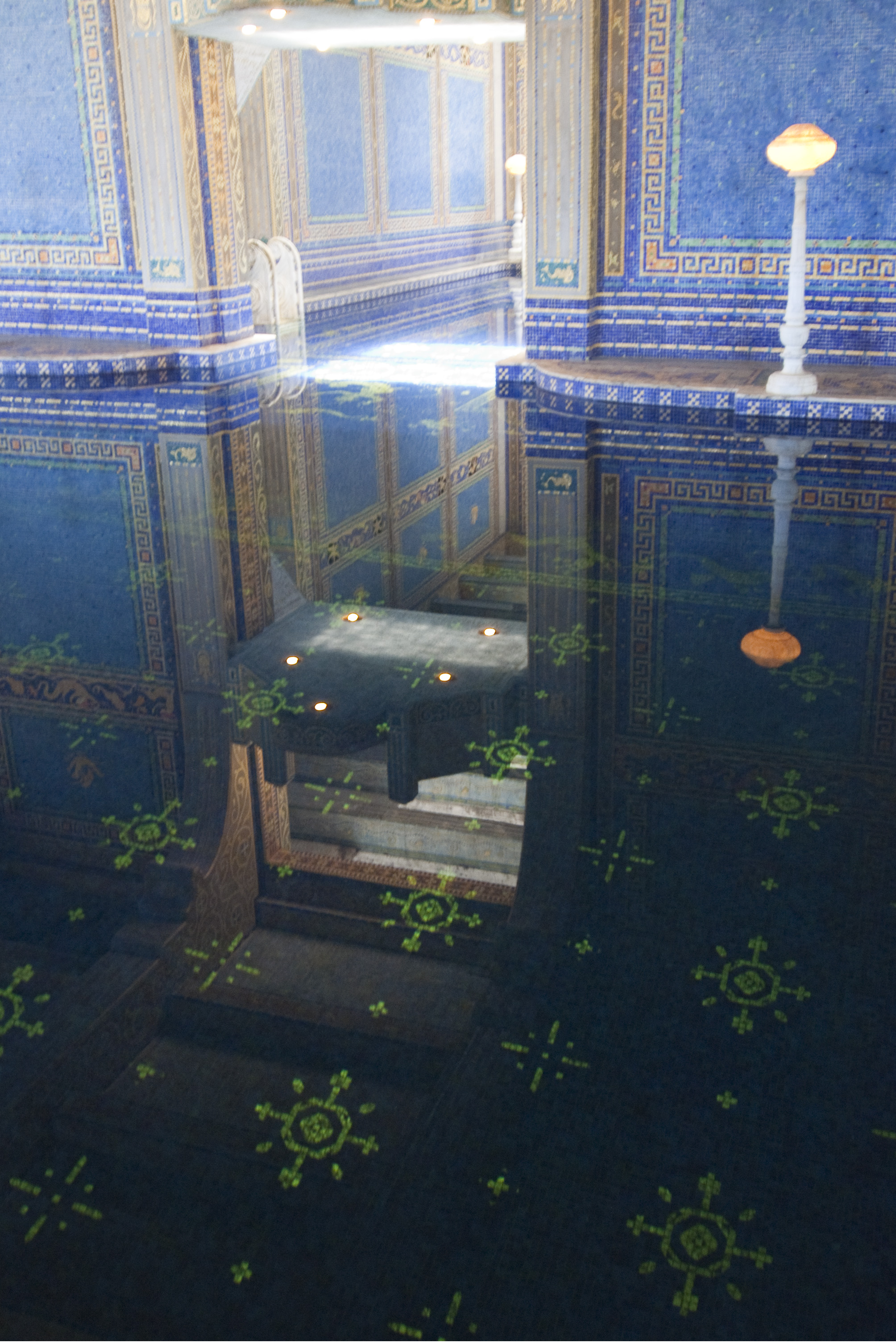 Keywords: california, Hearst Castle, san simeon, historic, tourist attraction, indoor pool, blue azure pool, water, bath, roman baths, mosaic tiles, interior