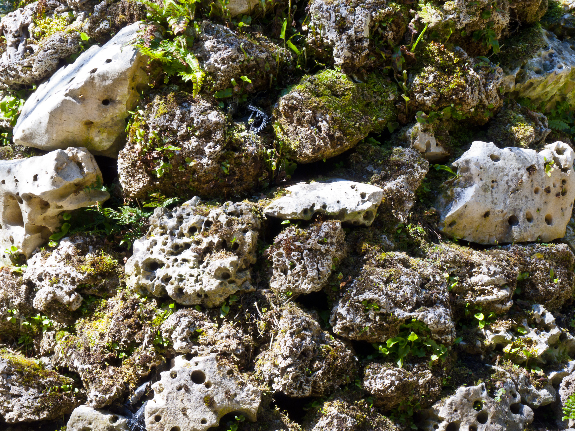 Pieces of rough grey stone forming an edge to a garden border.Photo Title: Rough Stone Shapes